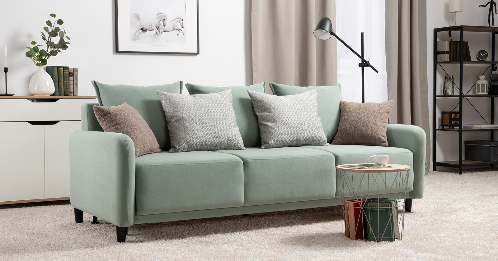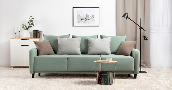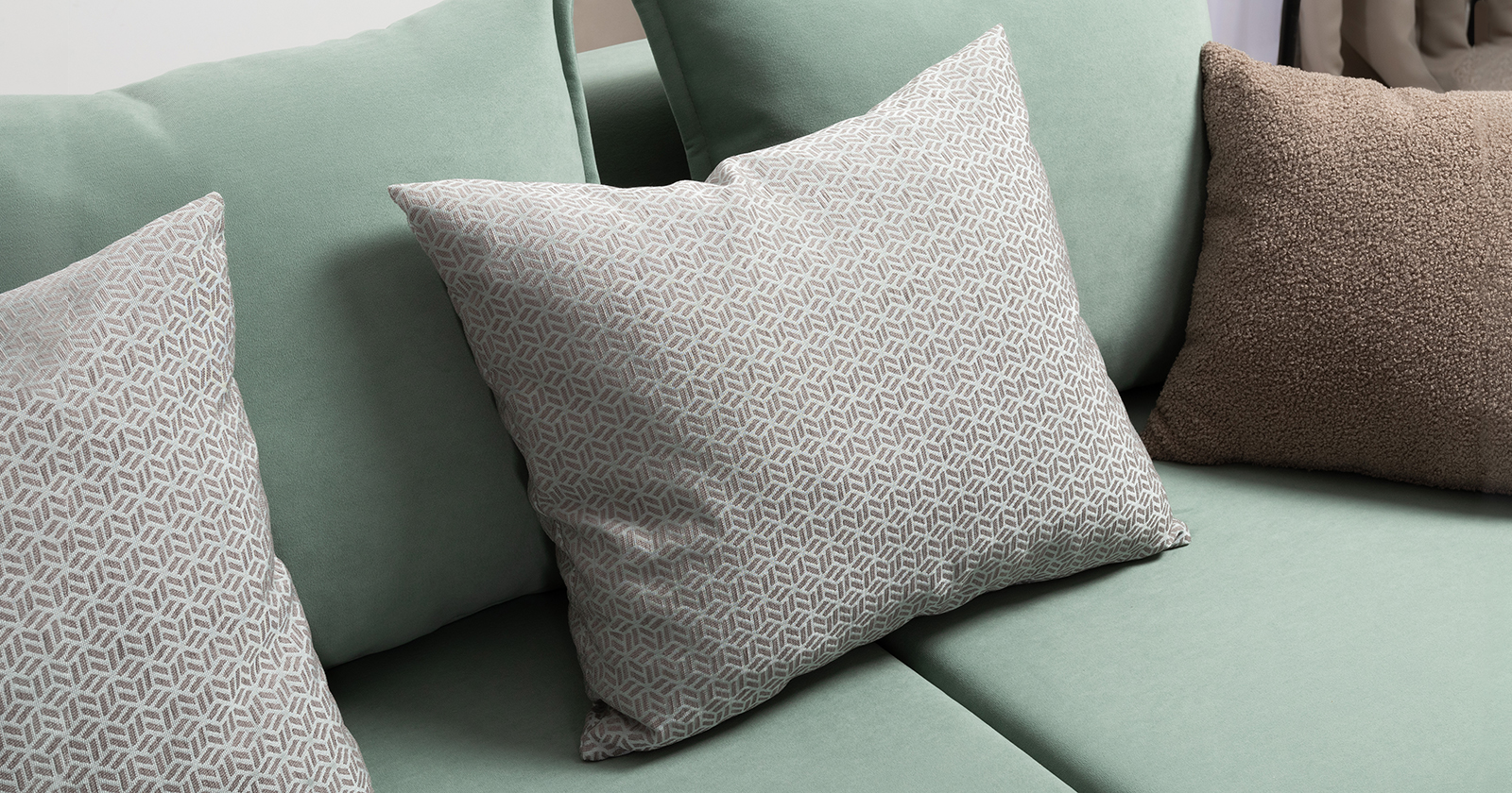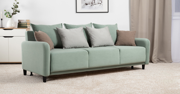 Диван-кровать прямой Дакота ТД 585 велюр Vendetta 18 ментоловый, Marcello-5 1327 A1 col 19 ментоловый орнамент, Romeo 03