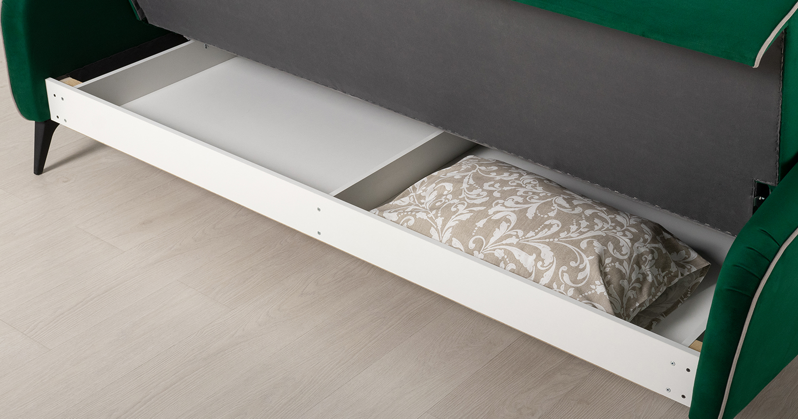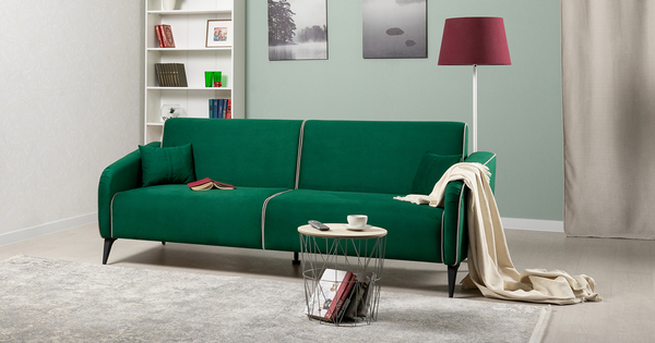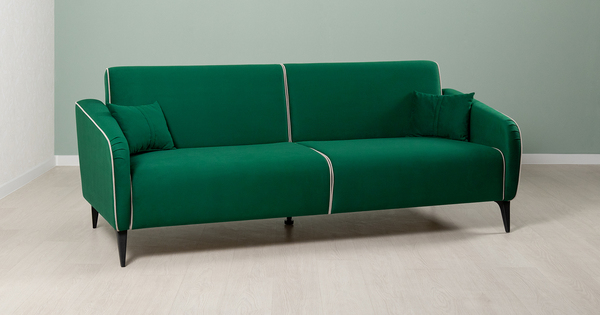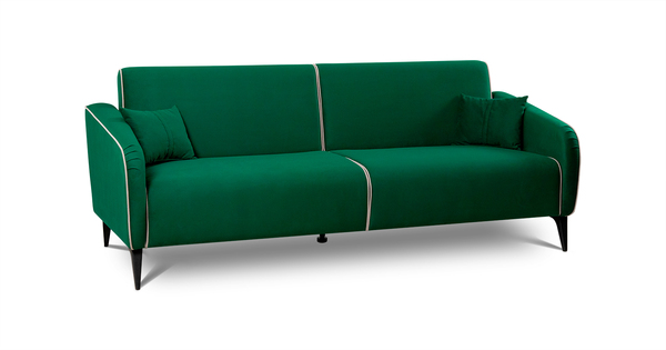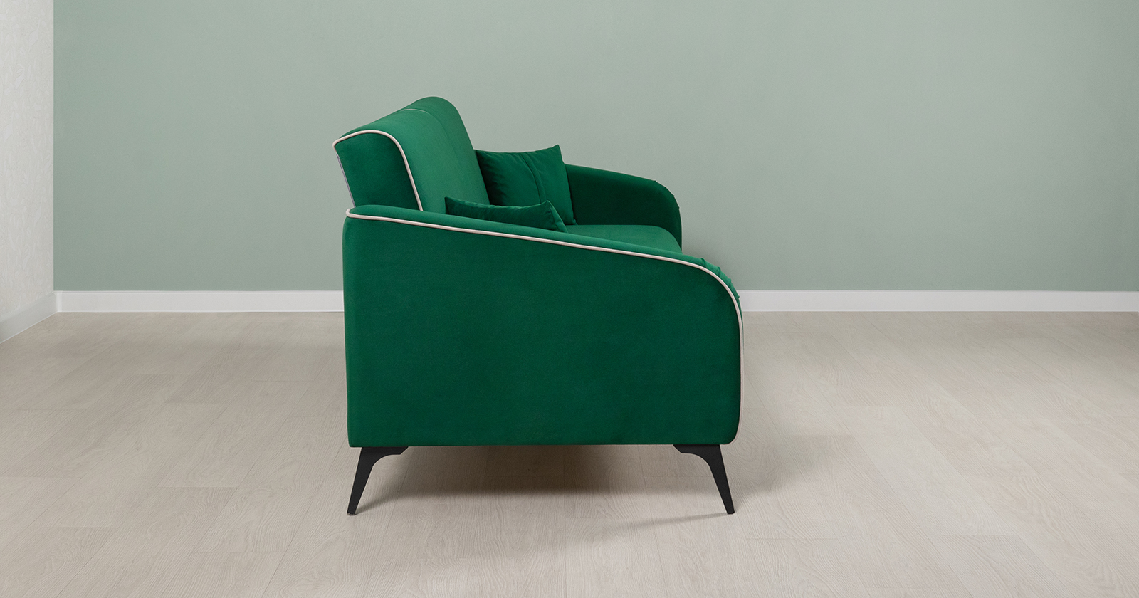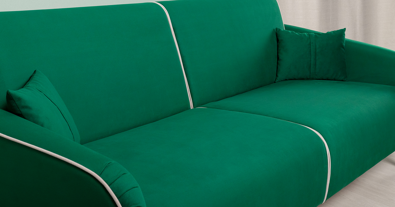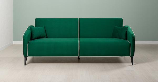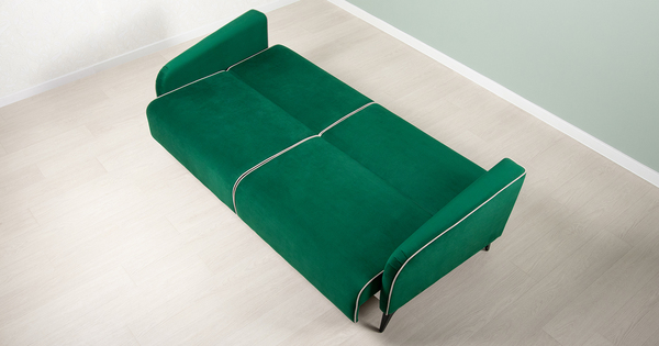 Диван-кровать прямой Ноэль ТД 446 велюр темно-зеленый малахитовый, светлый кварцевый серый