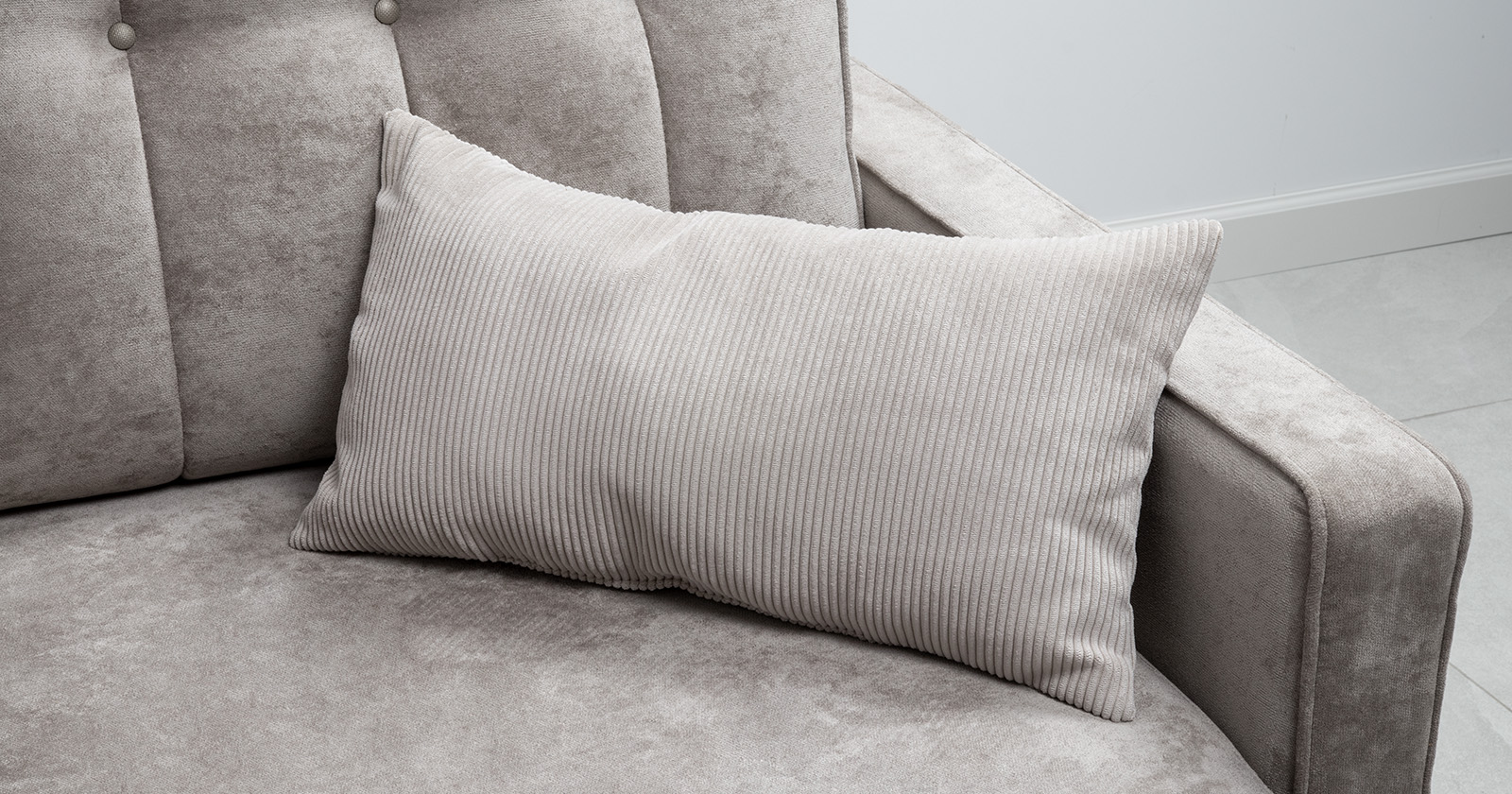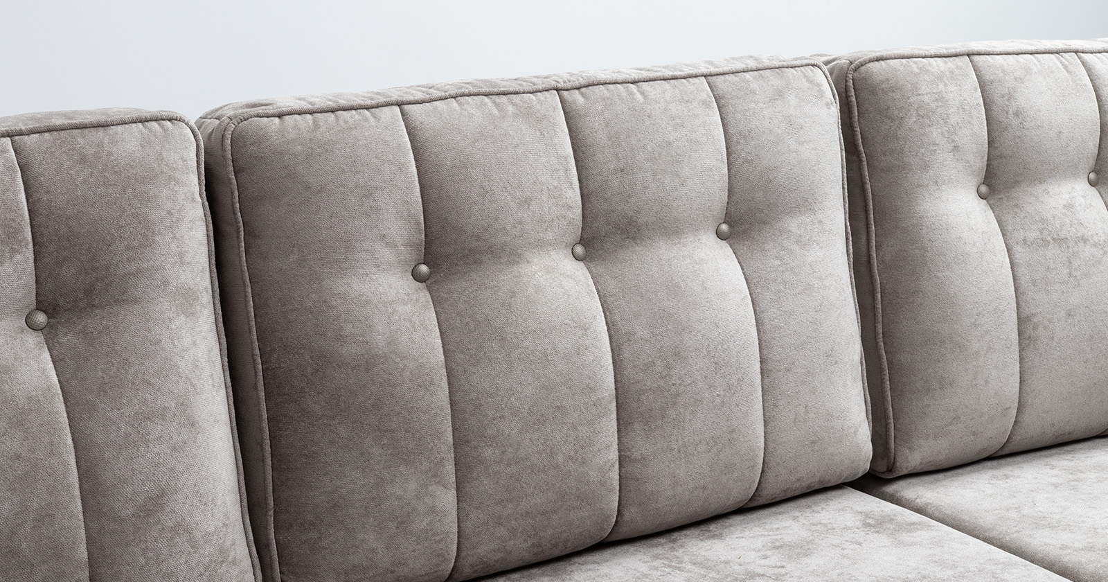 Подушки имеют трапециевидную форму, с утолщением к низу для комфорта посадки. Кант по всему периметру подушек, декоративные утяжки металлическими пуговицами, вертикальная стежка.