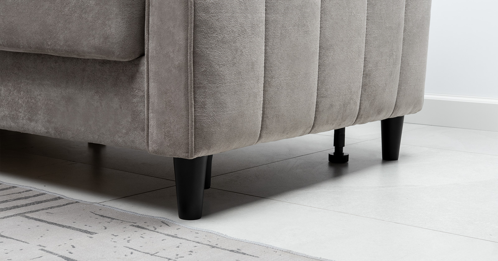 Модель с универсальным углом подойдёт любителям часто менять обстановку. Устойчивые конесообразные деревянные ножки придают дивану легкость и изящество. Для завершения интерьера можно заказать кресло Арно.