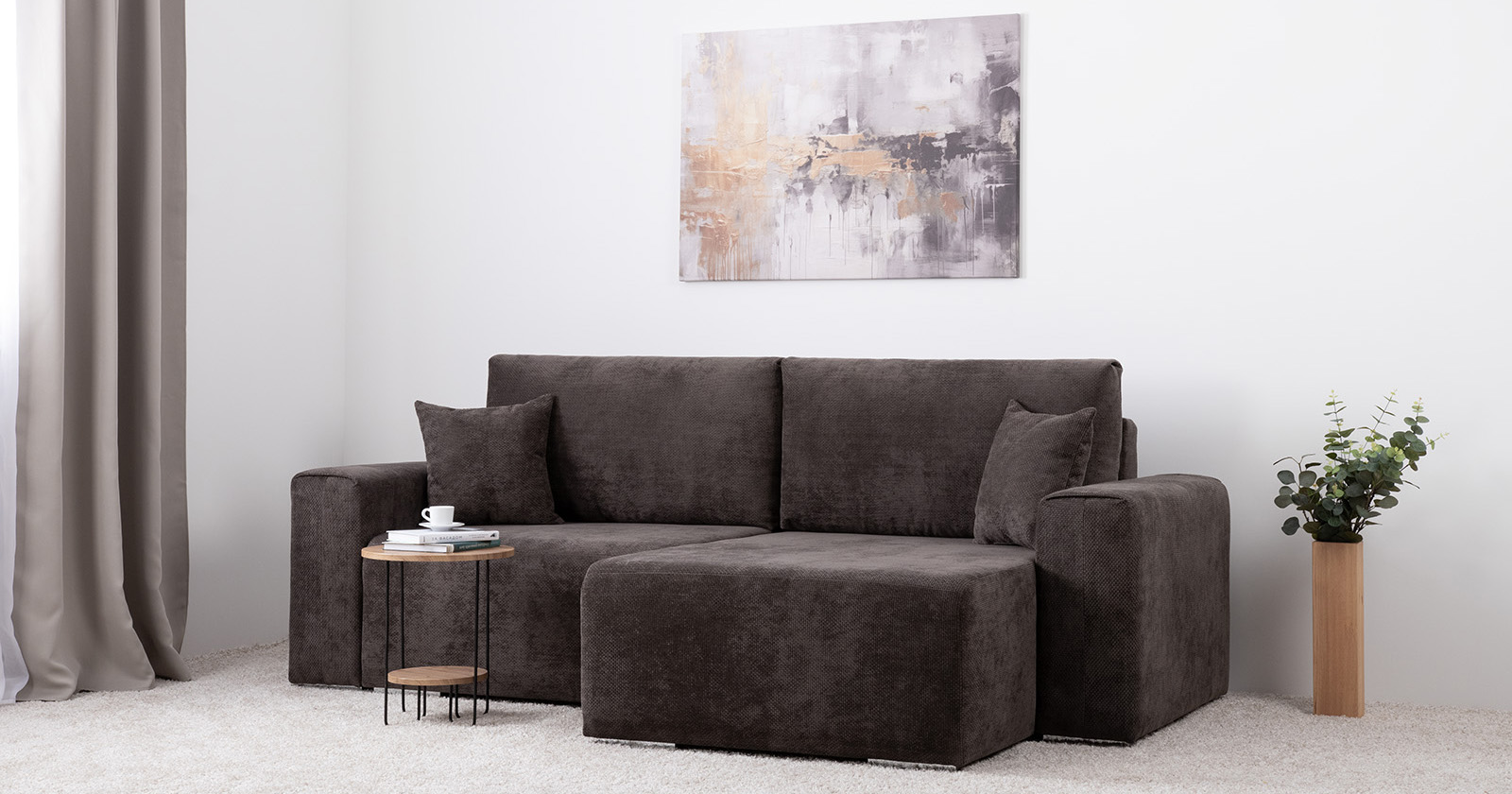 Диван-кровать угловой Оксфорд 711 композиция 1, шенилл Muza 06 темно-коричневый, модульная система, сборка на любую сторону