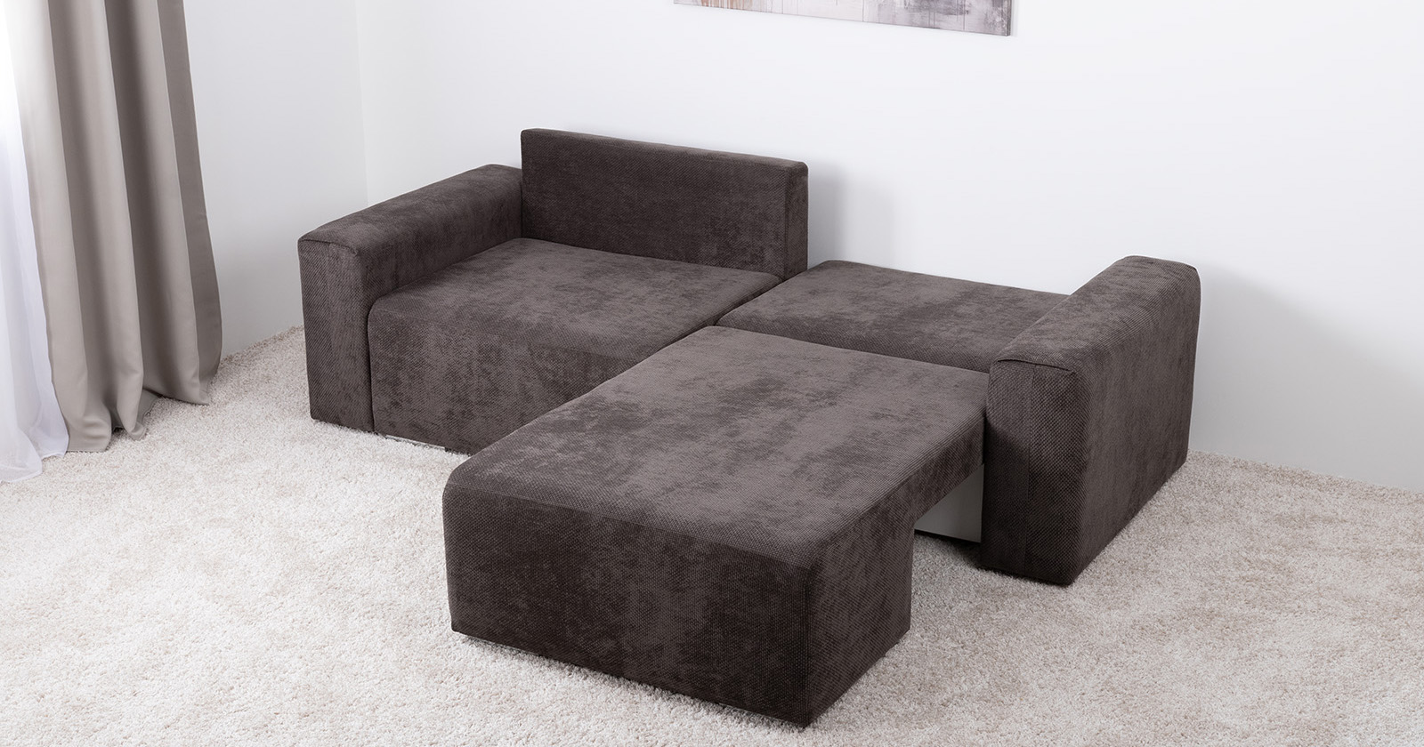 Диван-кровать угловой Тэдди 1506 композиция 3, букле Pique 011 серый, модульная система, сборка на любую сторону