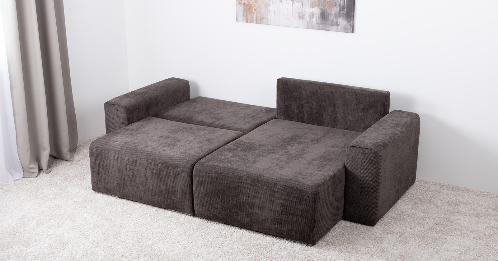 Диван-кровать угловой Тэдди 1506 композиция 2, букле Pique 011 серый, модульная система, сборка на любую сторону