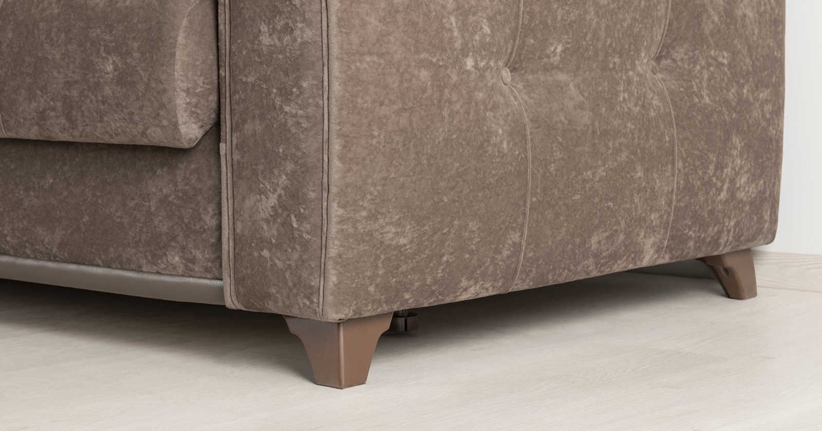 Выполнен в модном мягком велюре ROMANCE оригинальной фактуры. Ткань легко чистится, устойчива к зацепам, обладает повышенной износостойкостью. Благодаря особой технологии гладкого крашения Frozen Flower на поверхности ткани присутствует легкий краш–эффект, подчеркивающий невероятно мягкую фактуру ткани.