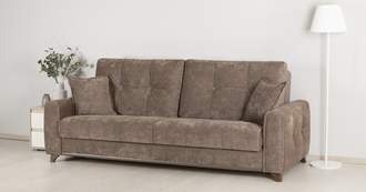 Плимут - современный диван с комфортной посадкой. Может быть дополнен креслом Плимут. Удачно впишется в любой современный интерьер благодаря универсальному дизайну и трендовым цветам обивки. При разложении не требует отодвигания от стены. Обеспечит полноценным ровным спальным местом двух человек.