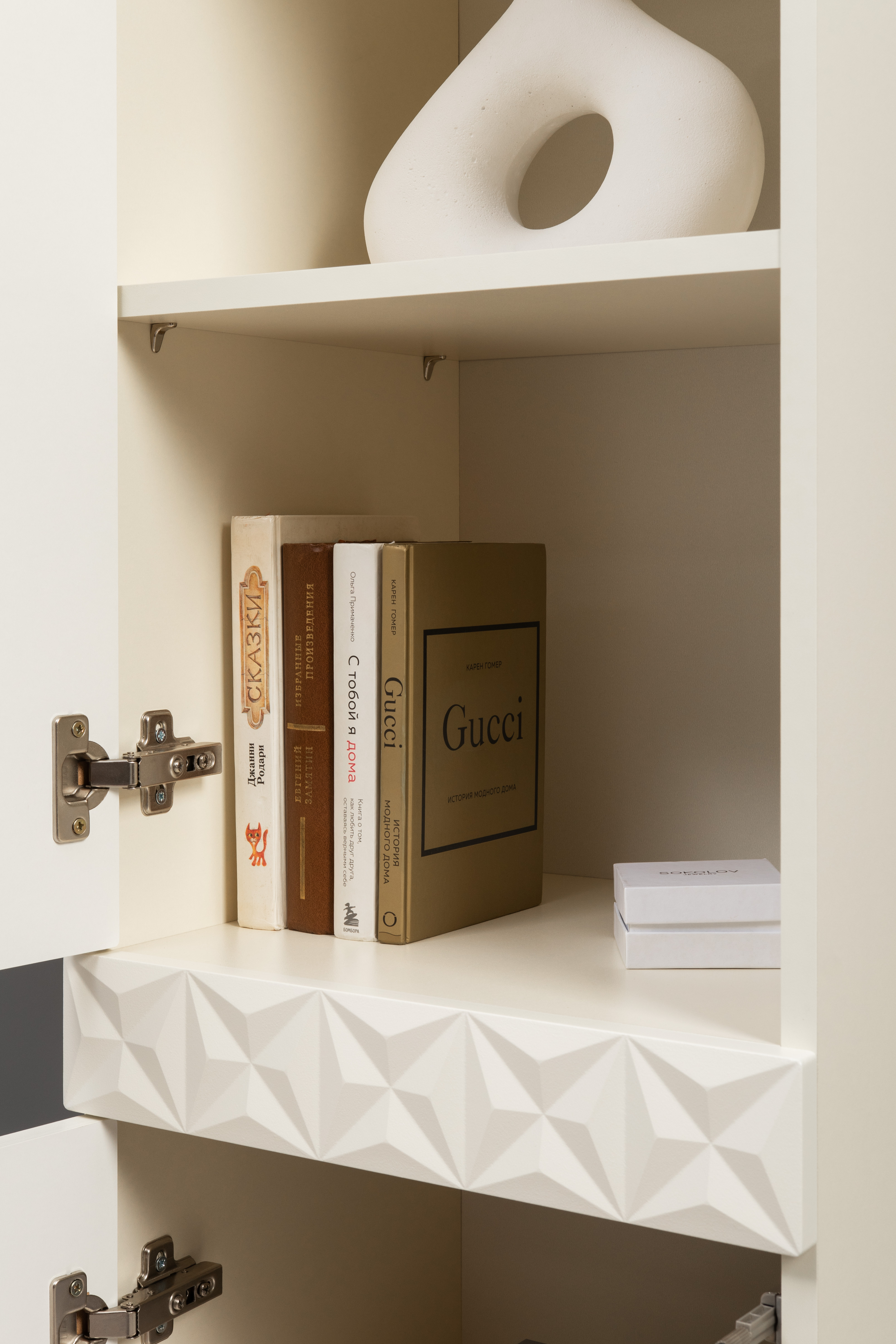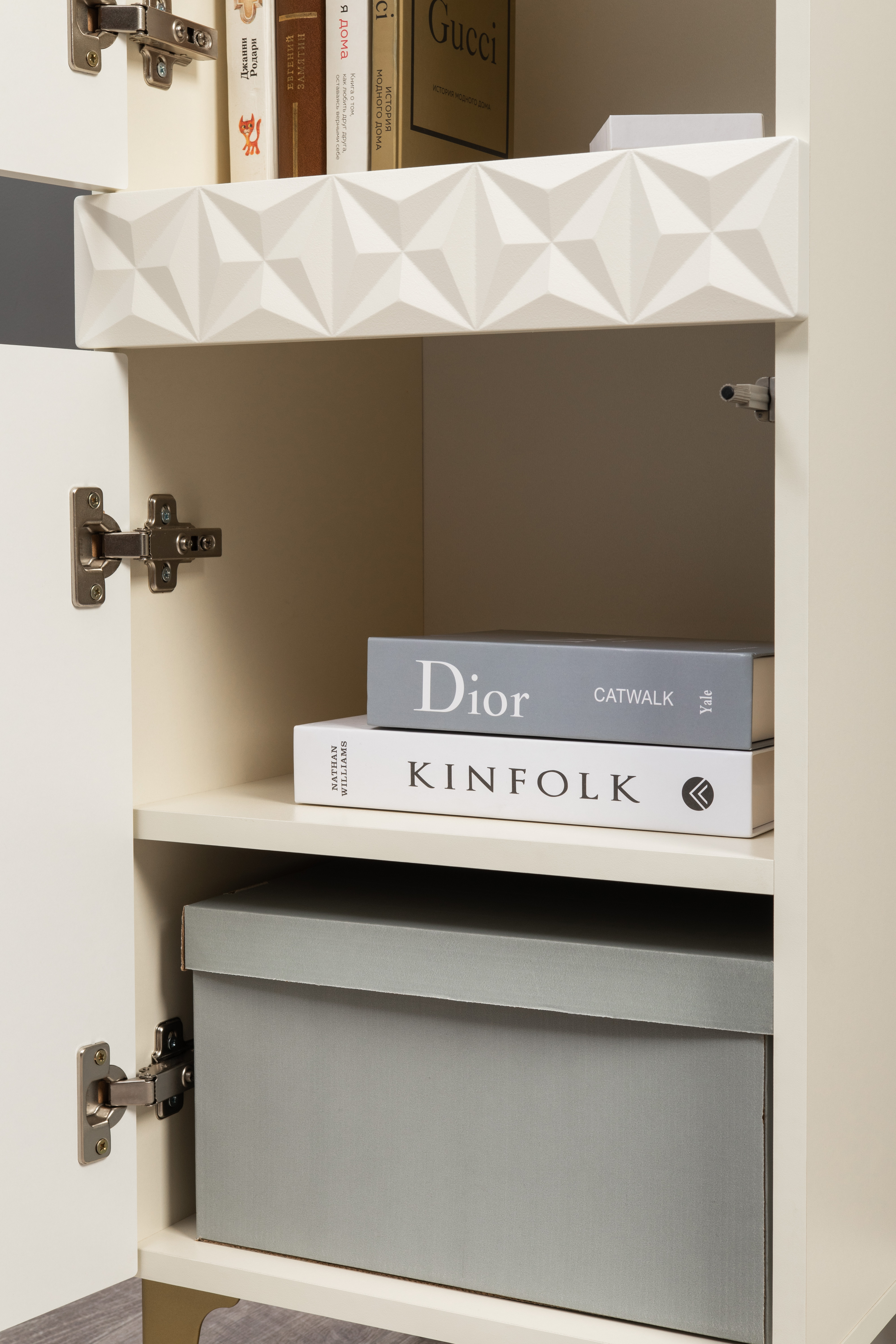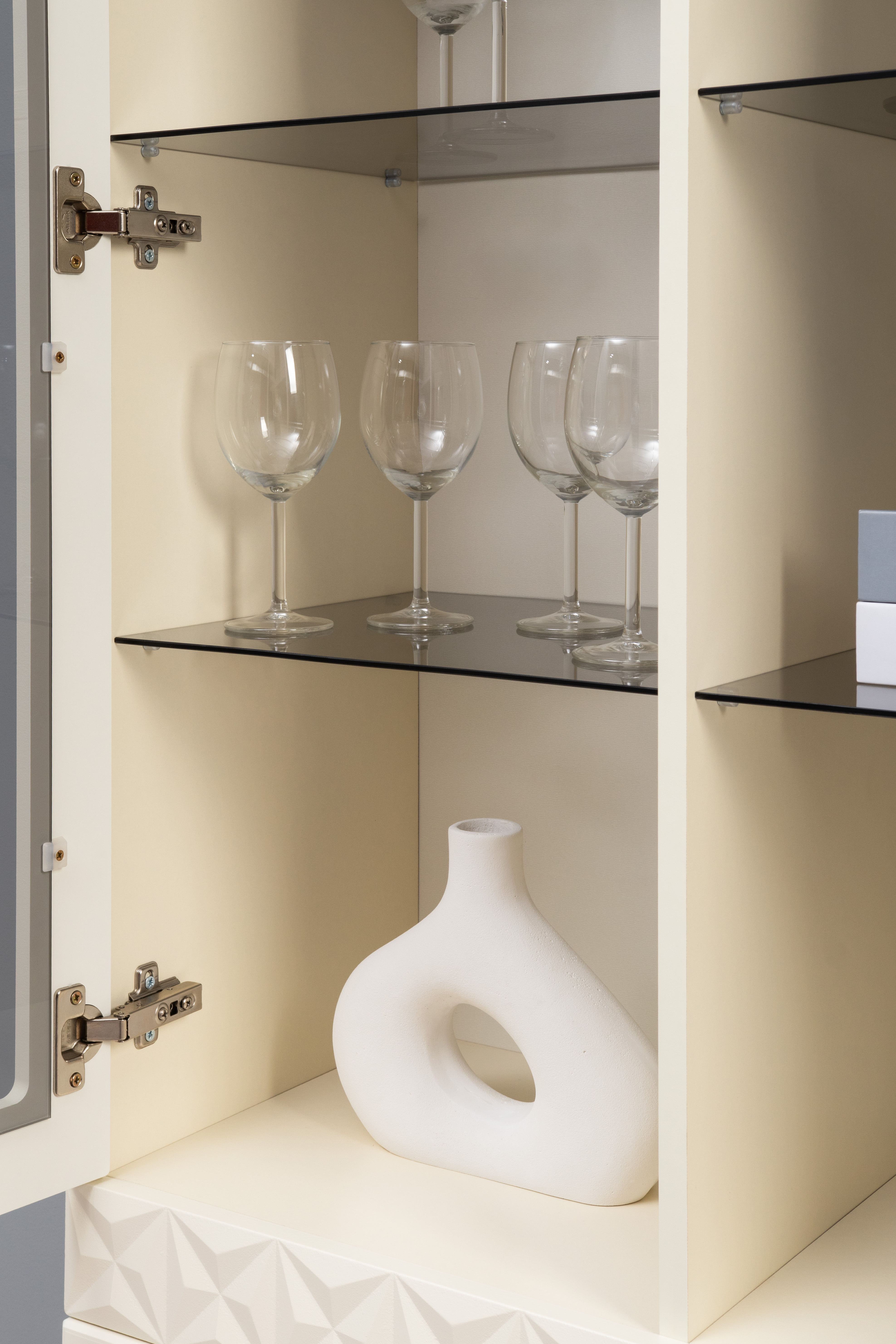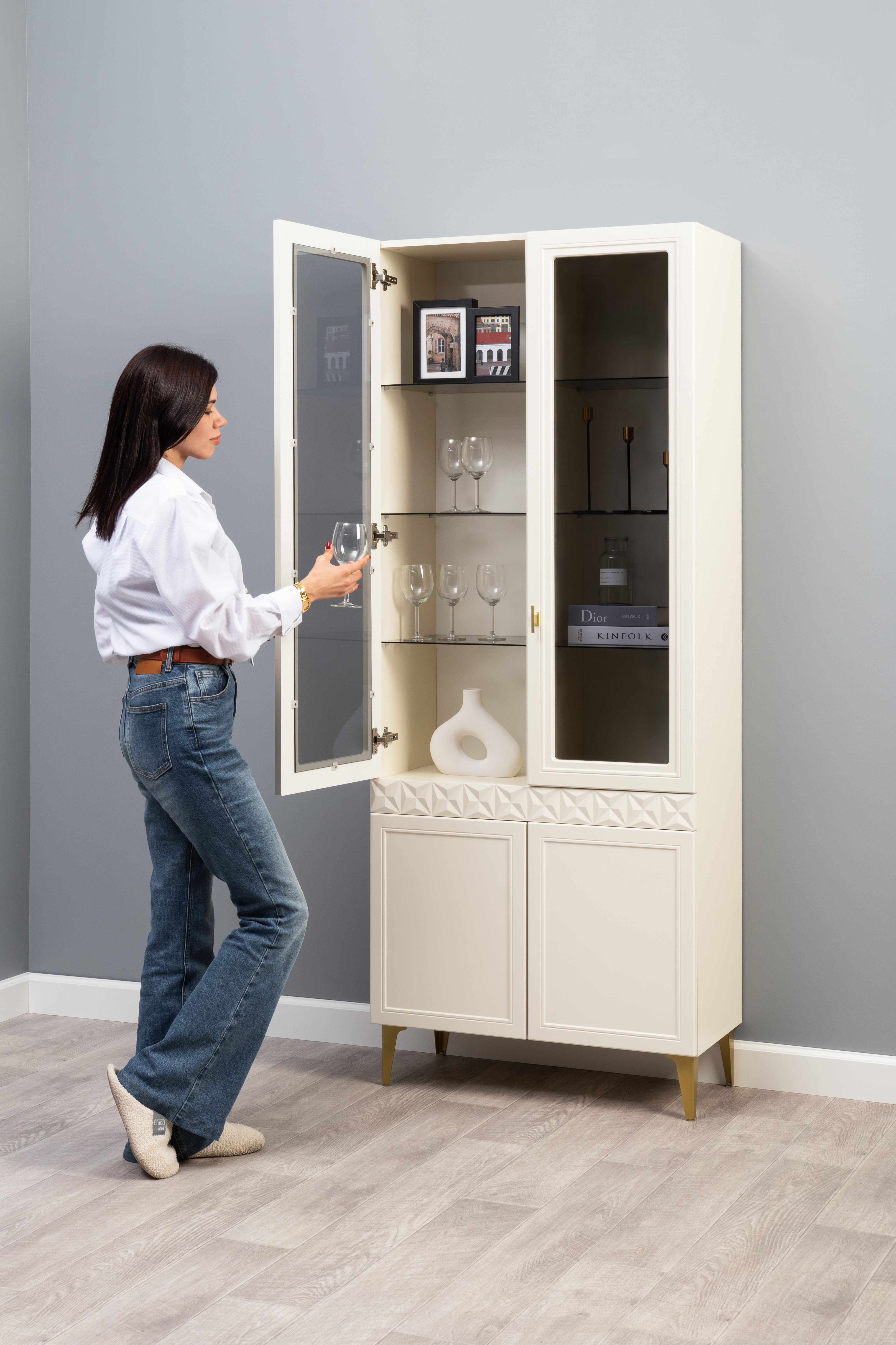 В коллекции представлены три типа витрин с тонированным закалённым стеклом, которые придают пространству лёгкость и свет. «Марион» — идеальное сочетание традиций и актуального дизайна в каждой детали.