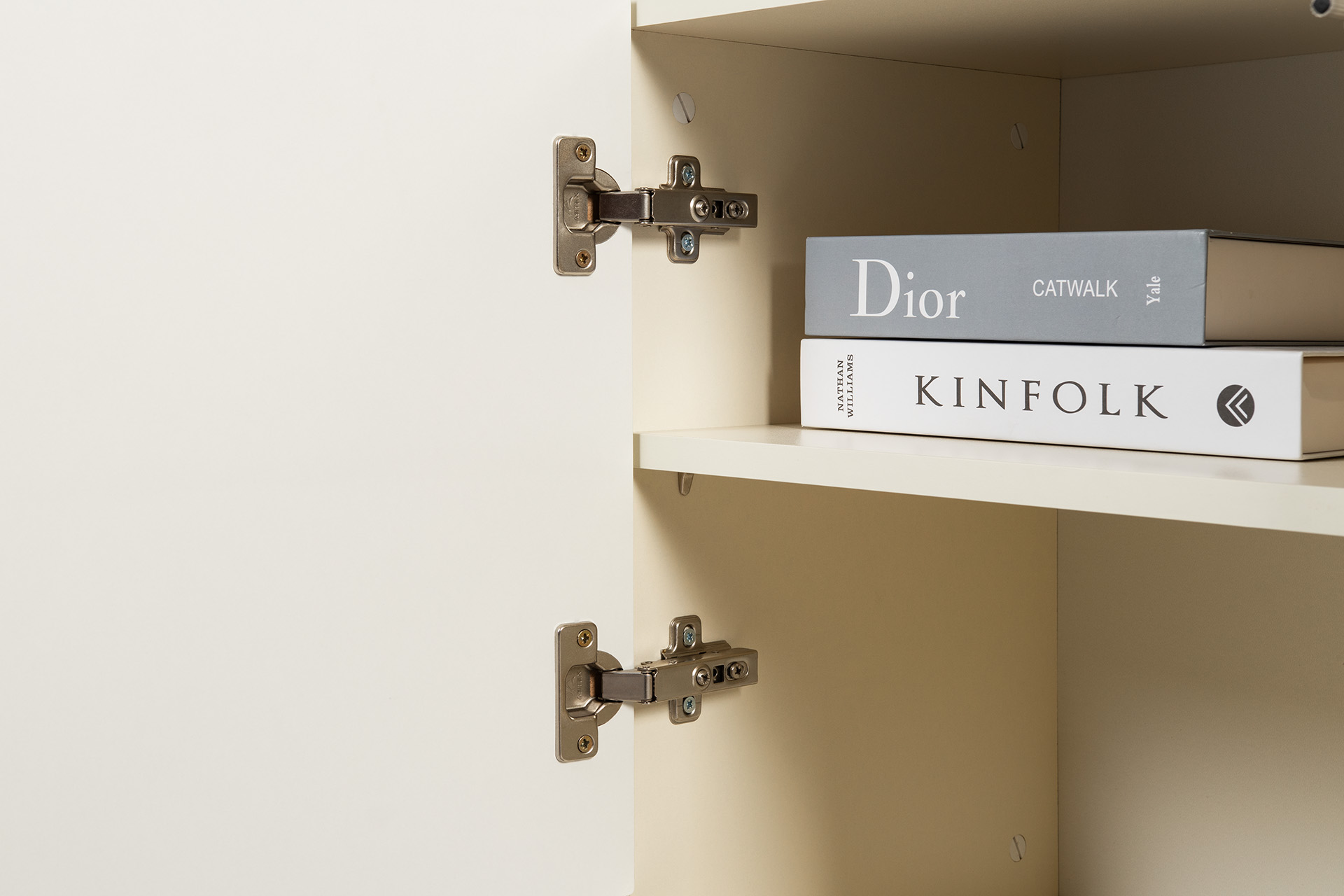 Изящные линии, глубокая фрезеровка фасадов из МДФ и благородные оттенки. Утончённая «Слоновая кость» и изысканная «Олива Шагрень» с глубоким зелёным тоном — создают атмосферу уюта, тепла и благородства. Металлические ручки и опоры золотого цвета придают мебели утончённый блеск, а петли и направляющие с доводчиками обеспечивают плавное и бесшумное закрытие фасадов.