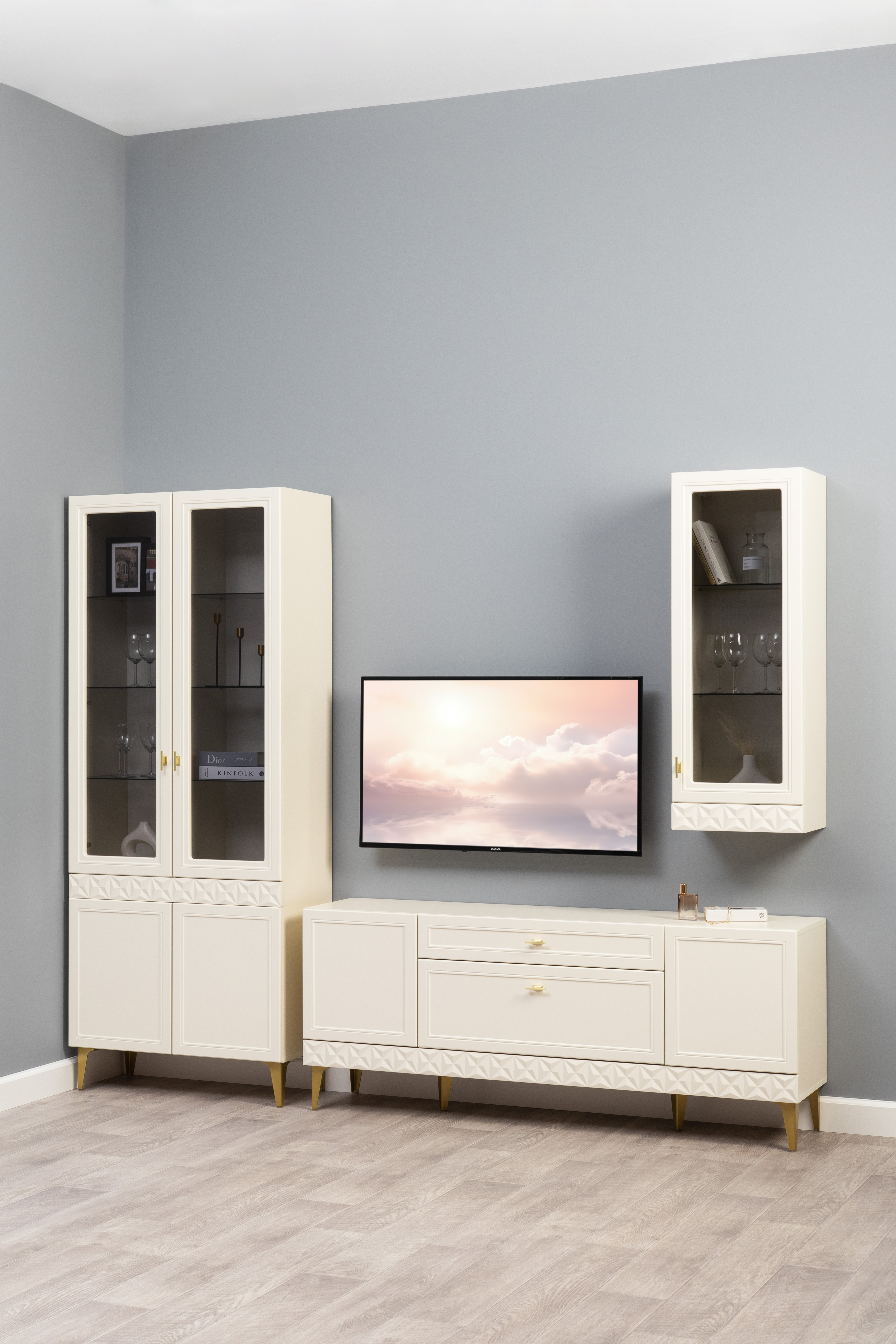 В коллекции представлены три типа витрин с тонированным закалённым стеклом, которые придают пространству лёгкость и свет. «Марион» — идеальное сочетание традиций и актуального дизайна в каждой детали.