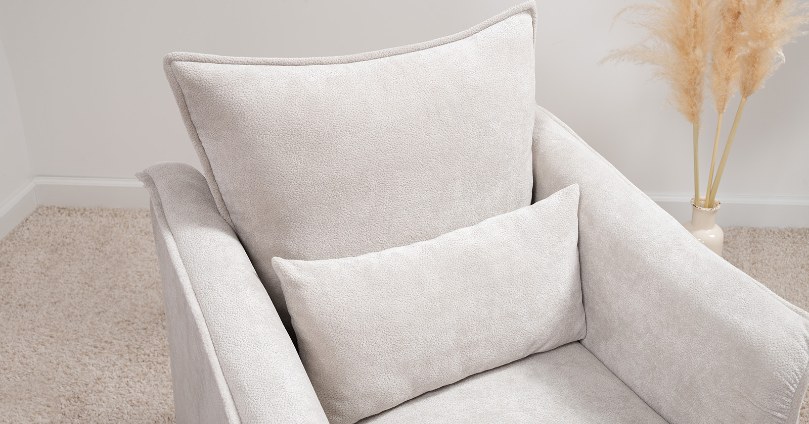 Изогнутые подлокотники в форме лепестков придают коллекции изысканный и элегантный вид, а дополнительные декоративные подушки обеспечат поддержку поясницы и помогут уютно устроиться на кресле.