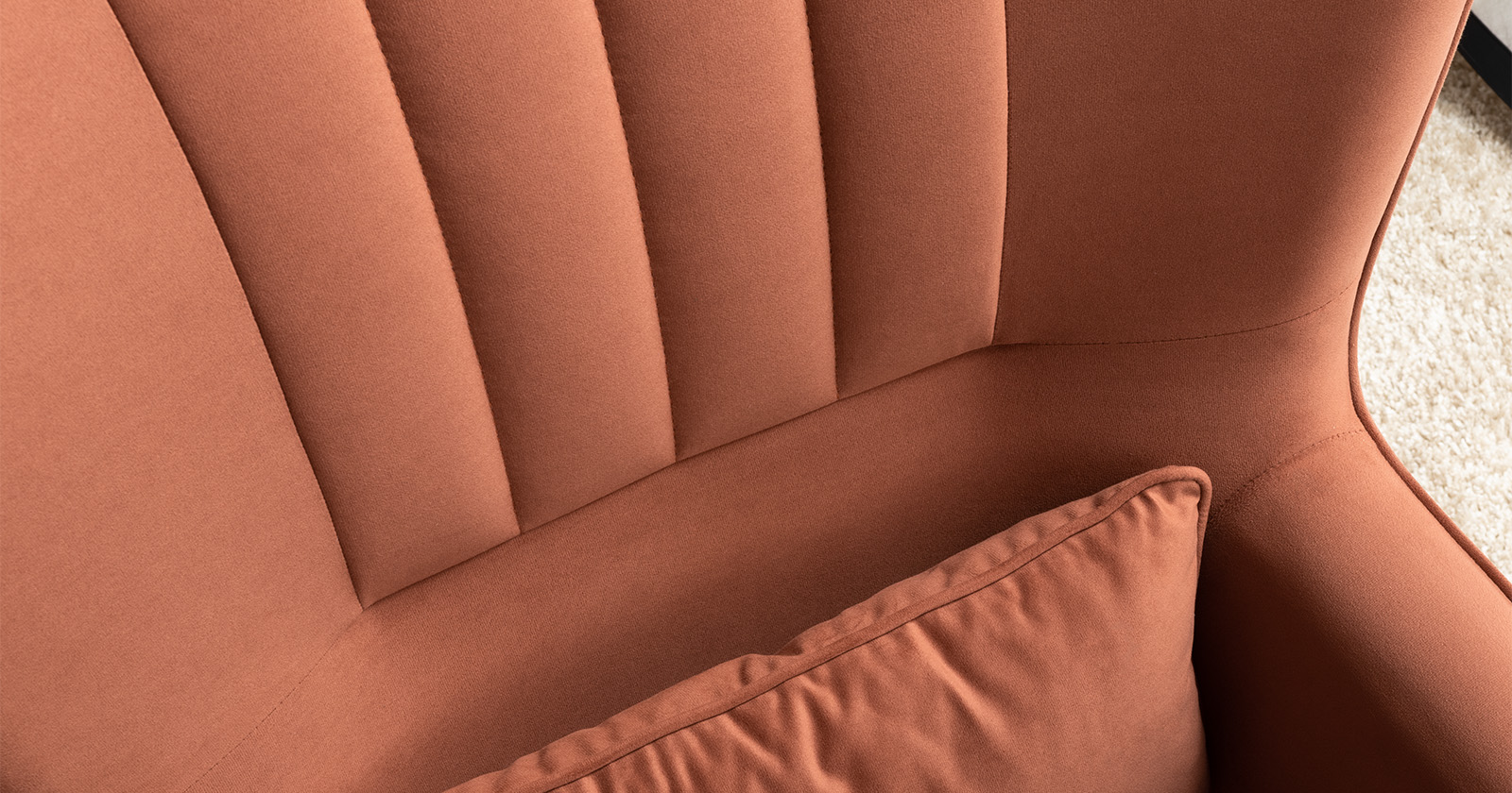 Вертикальная объемная стежка в средней части спинки; кант на спинке, подлокотниках и декоративной подушке