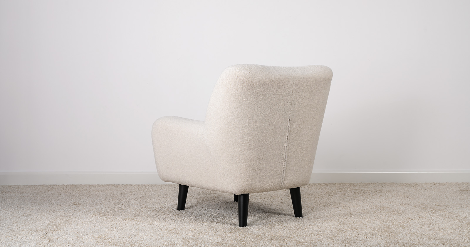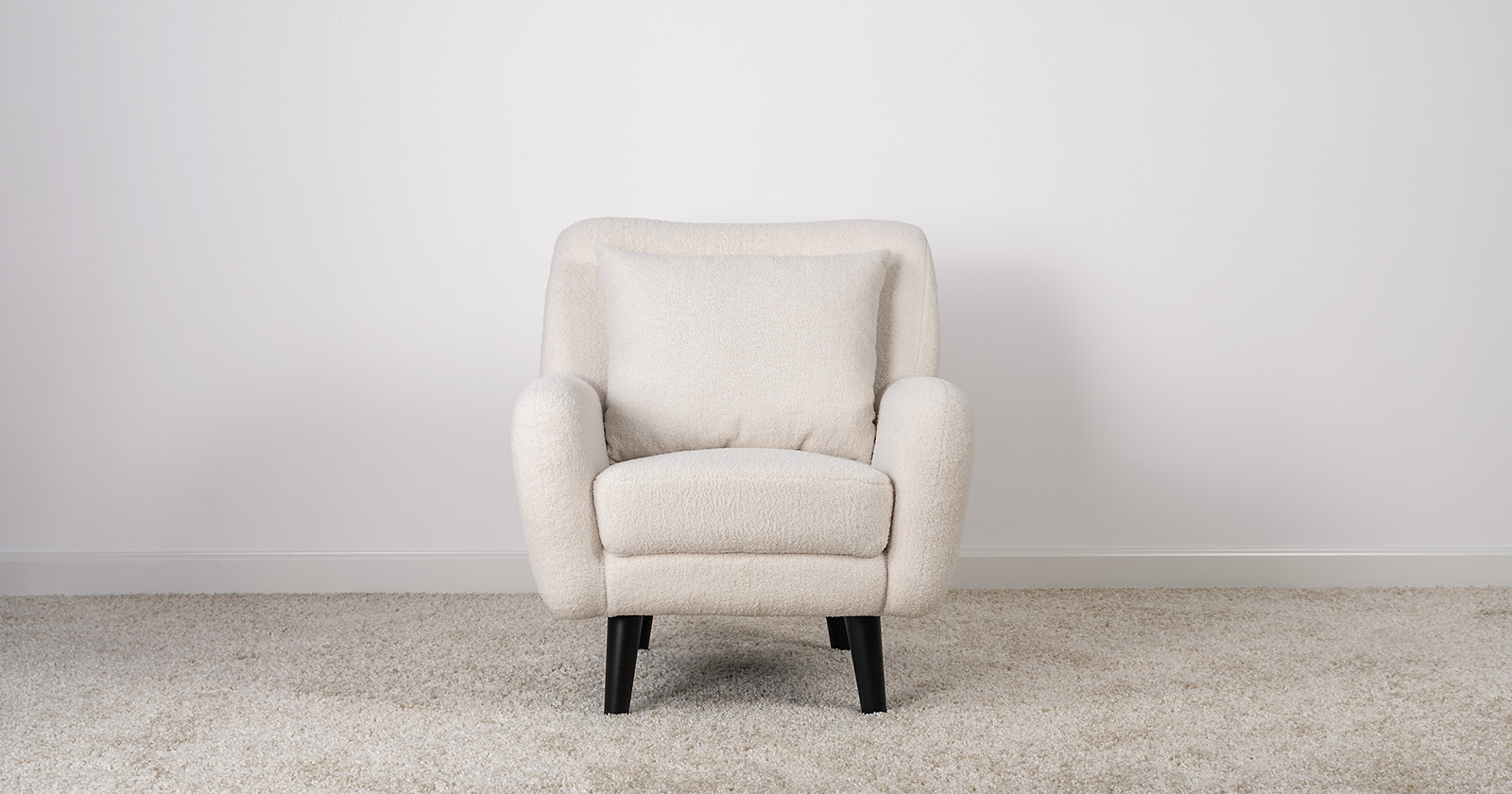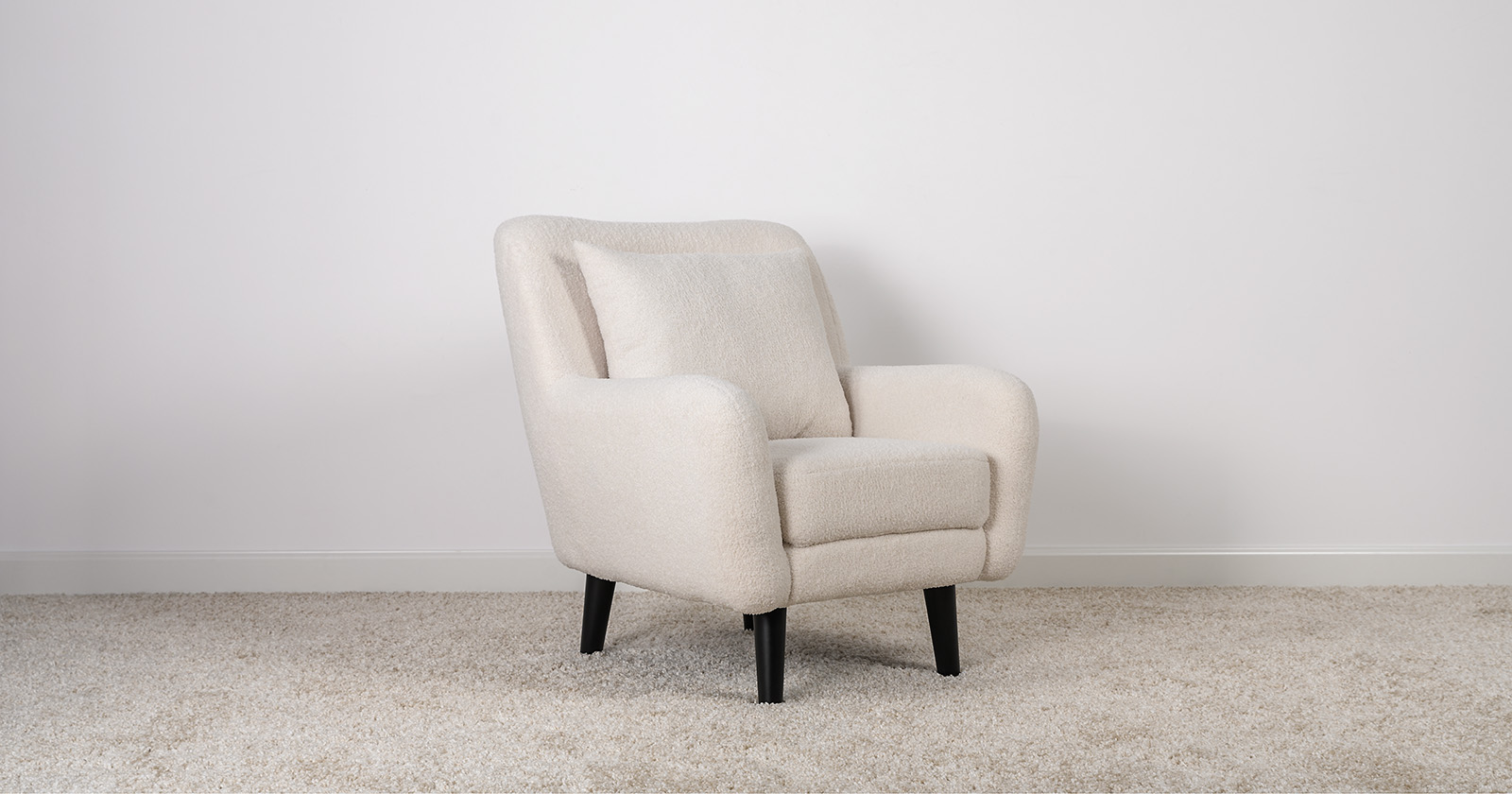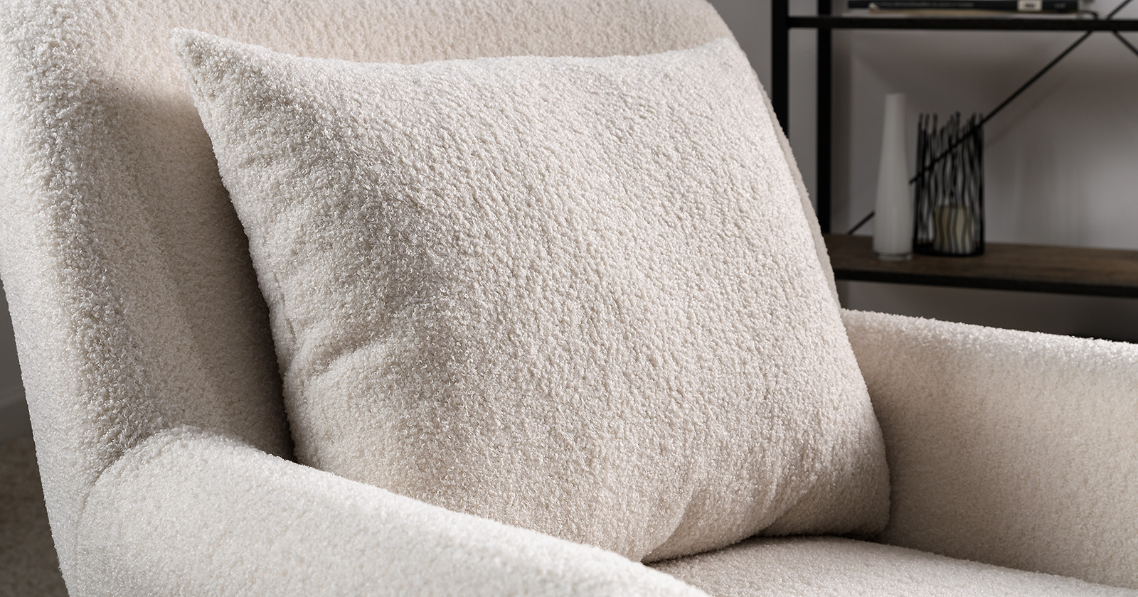 Ткань букле делает кресло особенно уютным и мягким. Приспинная подушка в цвете кресла