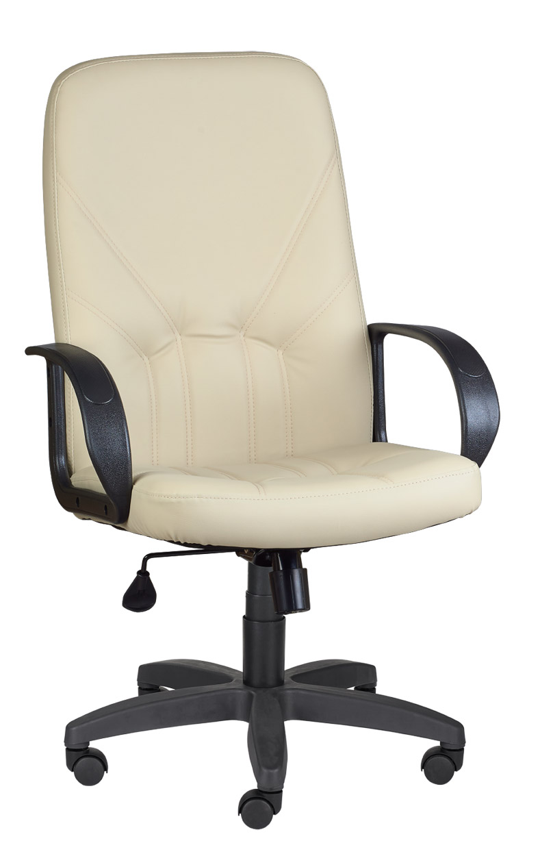 Кресло на колесах Менеджер ультра кожзам бежевый крестовина пластик, подлокотники пластик, механизм качания