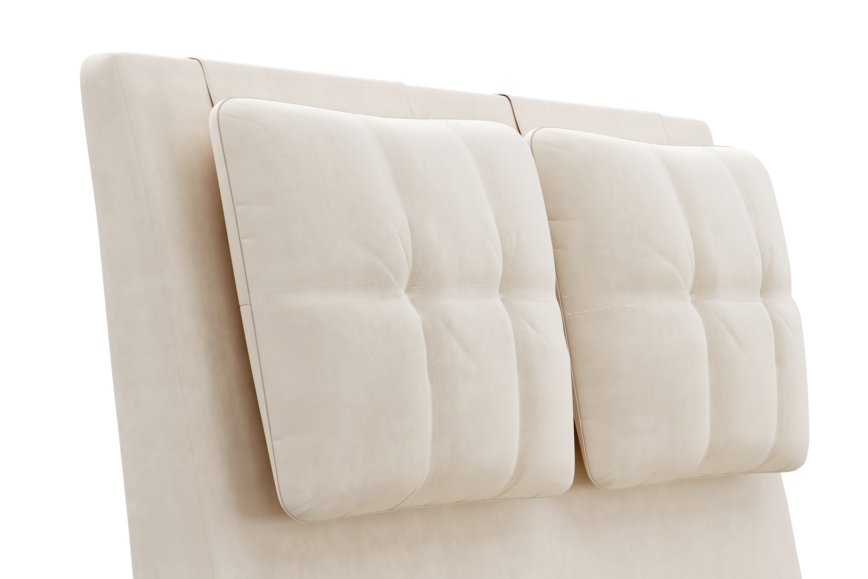 Кровати выполнены в нейтральных и в ярких тканях велюр, что позволяет подобрать подходящий вариант почти под любой интерьер. В качестве декора применяются декоративные подушки на изголовье.