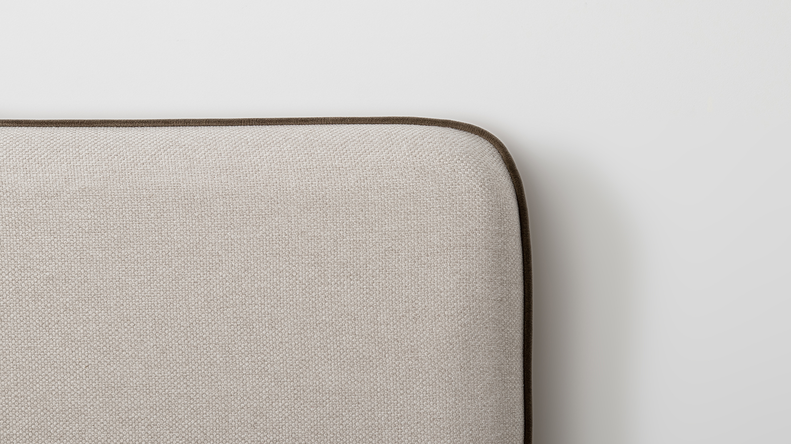 Cкругленный торец изголовья оформлен контрастным кантом.