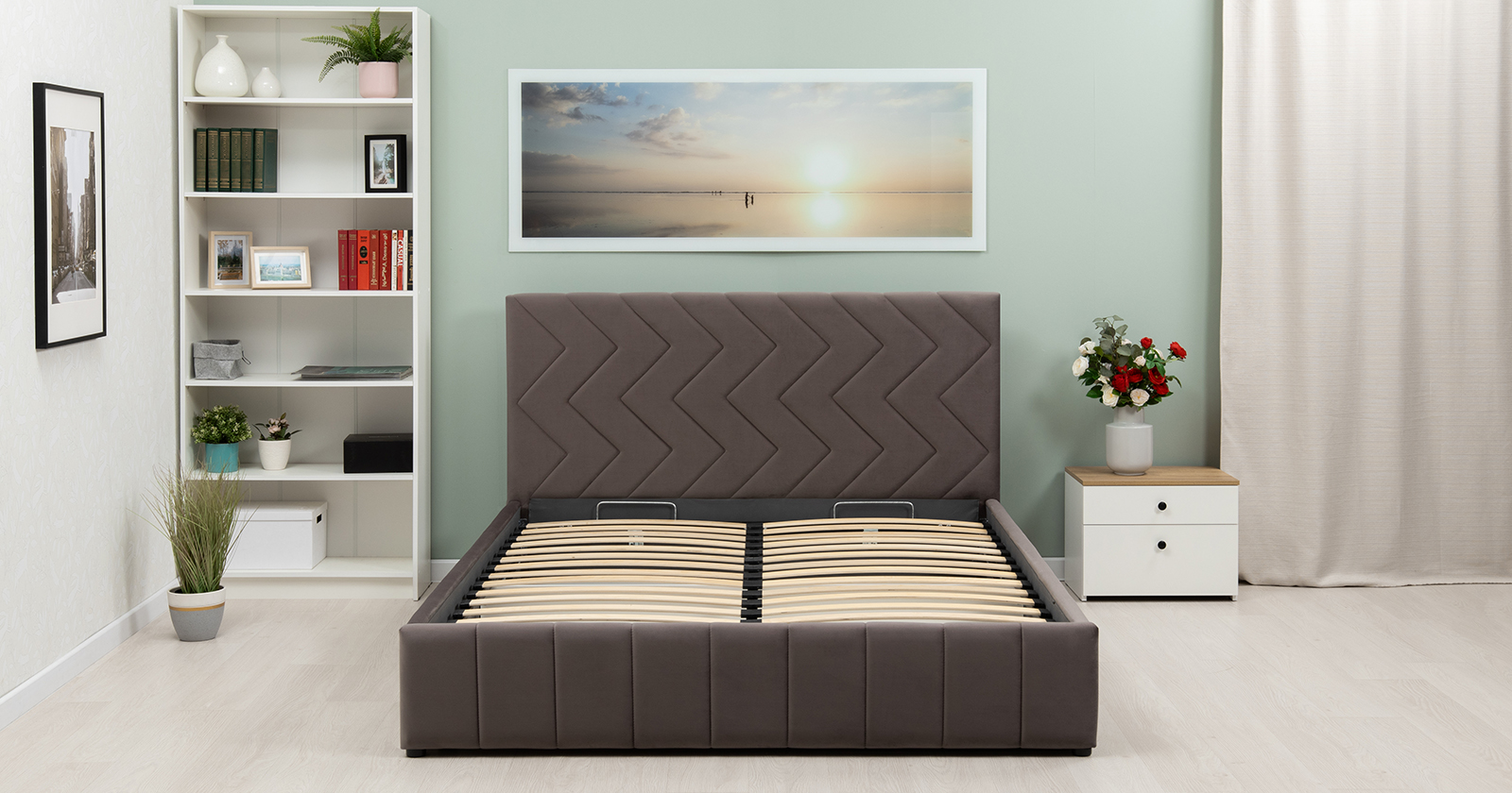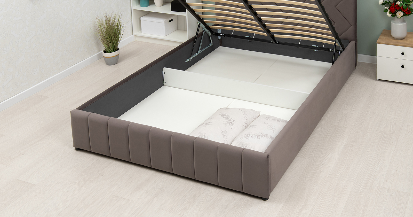 Кровать Милана 160 велюр серо-коричневый с ортопедическим основанием и подъемным механизмом