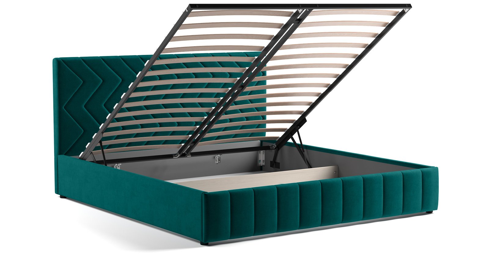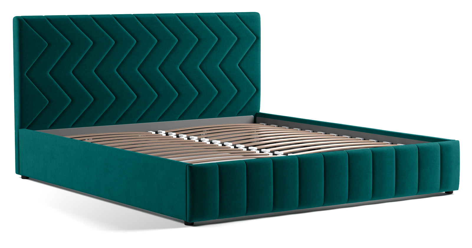 Кровать Милана 160 велюр сине-зеленый с ортопедическим основанием и подъемным механизмом