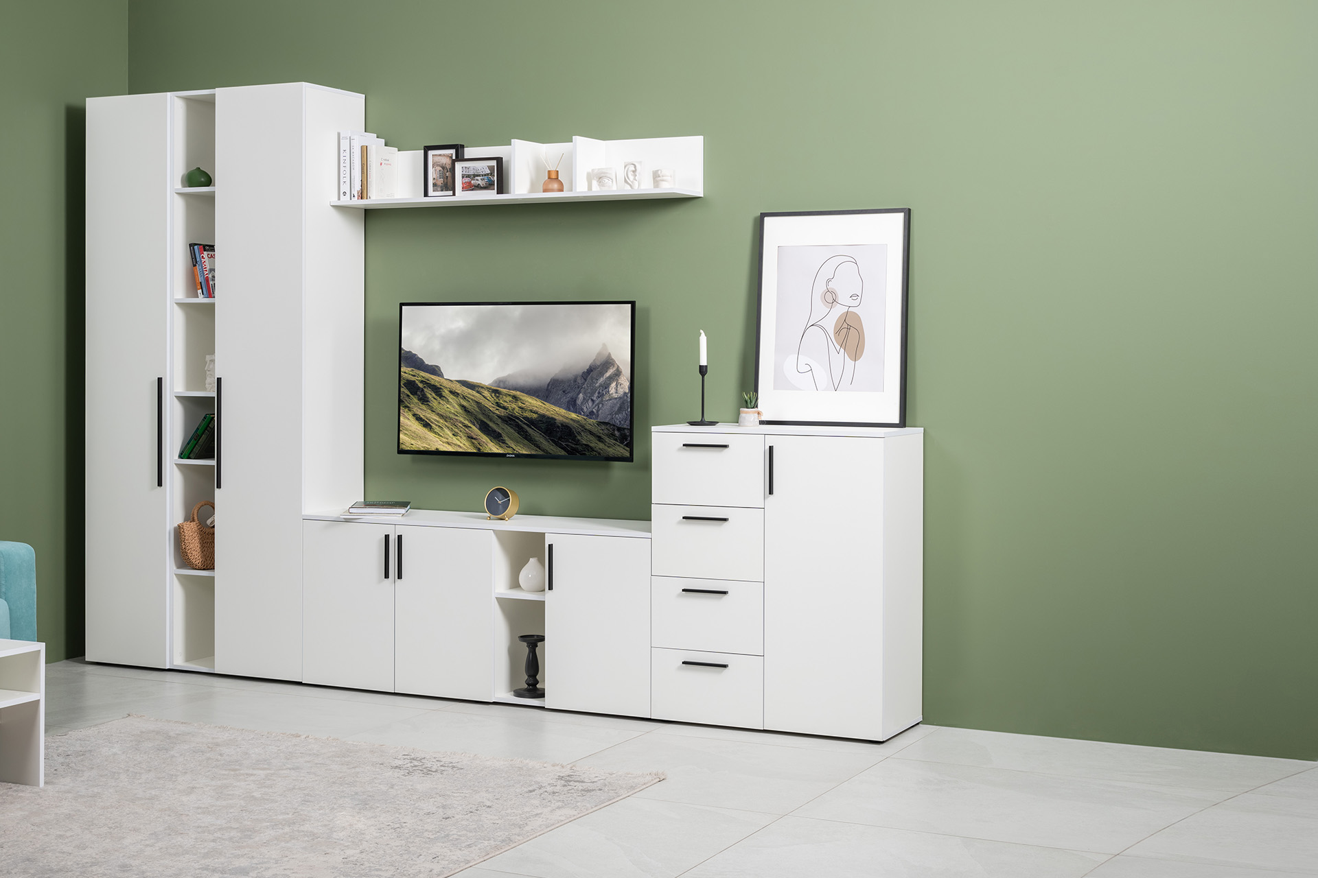 Прихожая Эйр композиция 1 белый PE шагрень, собирается на любую сторону