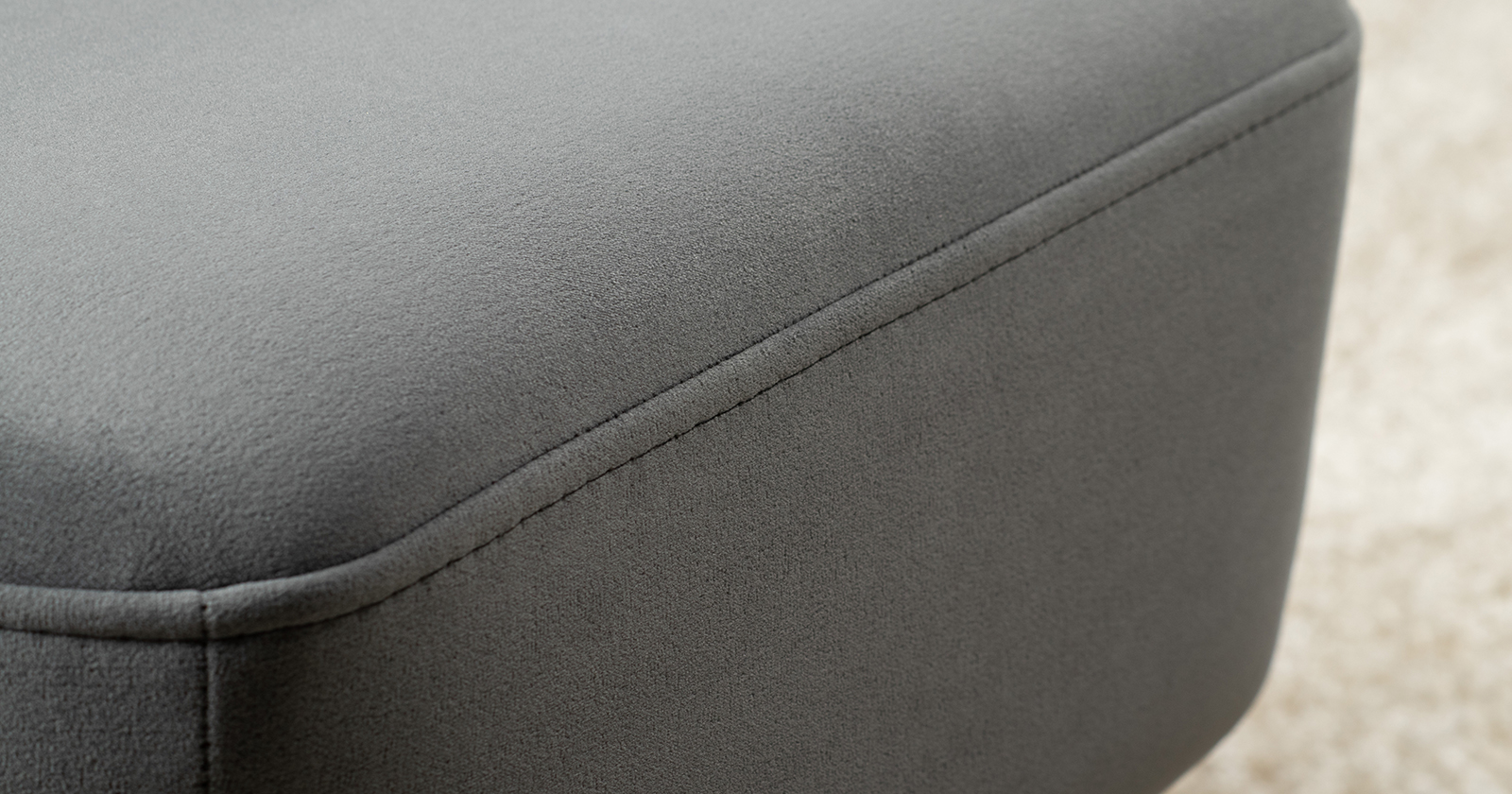 Мягкие линии и визуальная легкость — отличительные черты пуфа Дакота. Гармонично дополнит диван и кресло из этой коллекции.