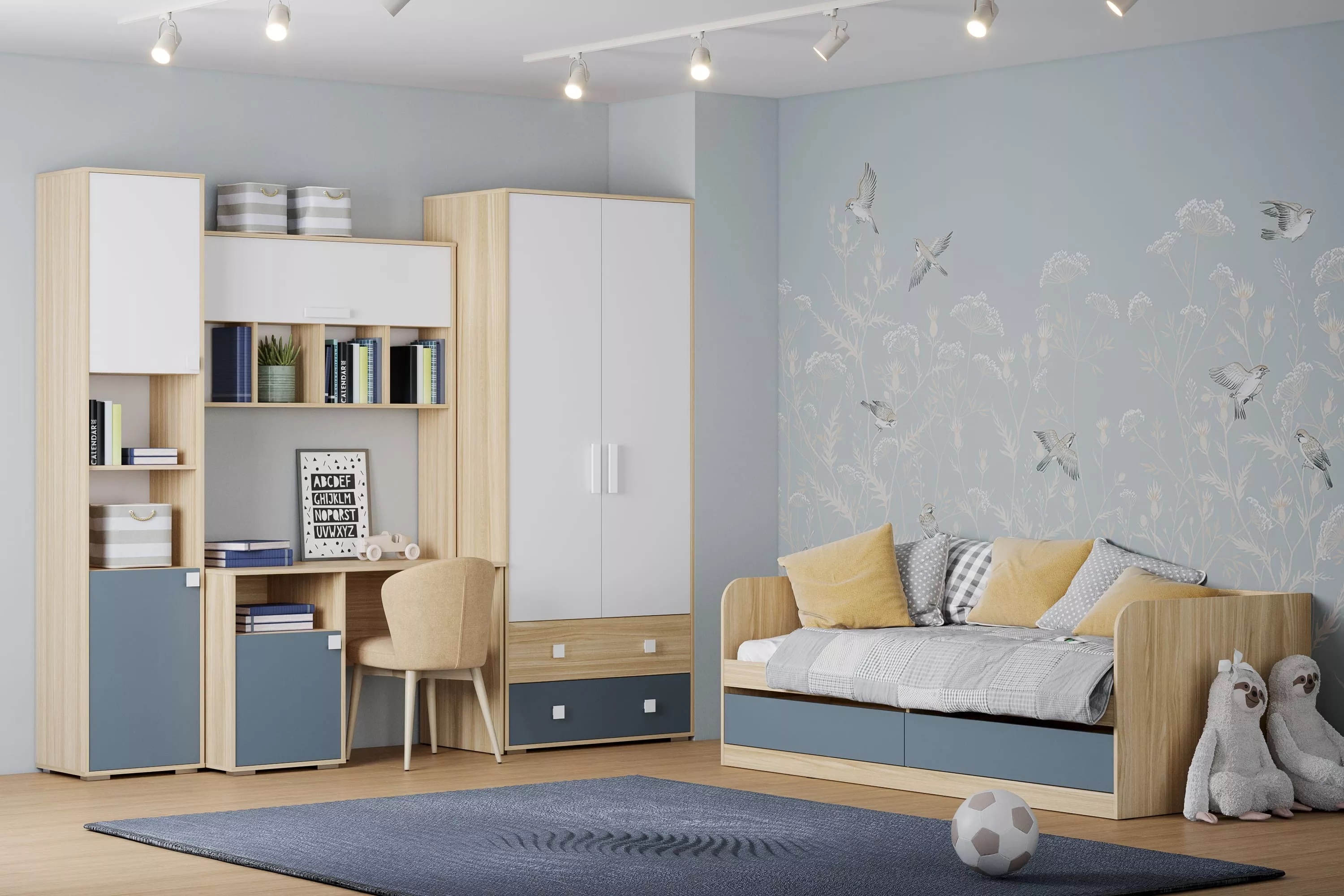 Шкаф для одежды из новой коллекции детской мебели Элиот выполнен в нейтральных оттенках песочного, белого и контрастного маренго – цвета темной морской волны, которые отлично подойдут в комнату как девочки, так и мальчика, сделав ее стильной и современной.