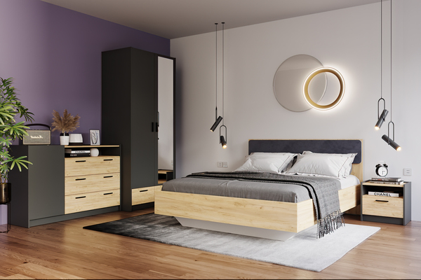 Комод Оттавия НМ 011.03 антрацит, дуб крафт золотой