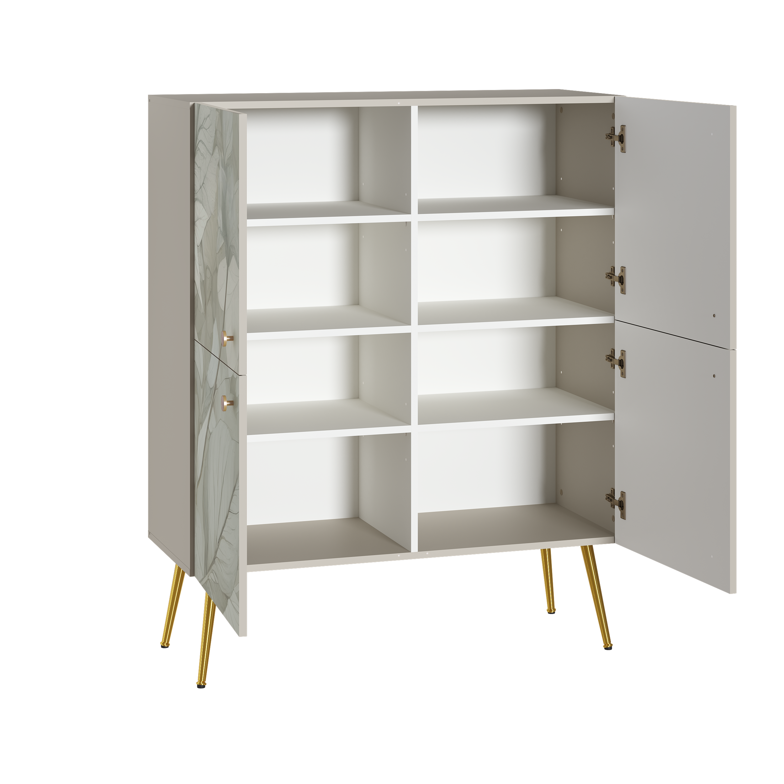 Шкаф Флоу 16.329 выделяется растительным принтом на фасаде, создающими свежий и стильный акцент в интерьере. Металлические ручки и опоры с регулировкой придают конструкции надежность и современный вид. Вместительные отделения, петли с доводчиком и скрытая задняя стенка обеспечивают удобство хранения и аккуратный внешний вид.