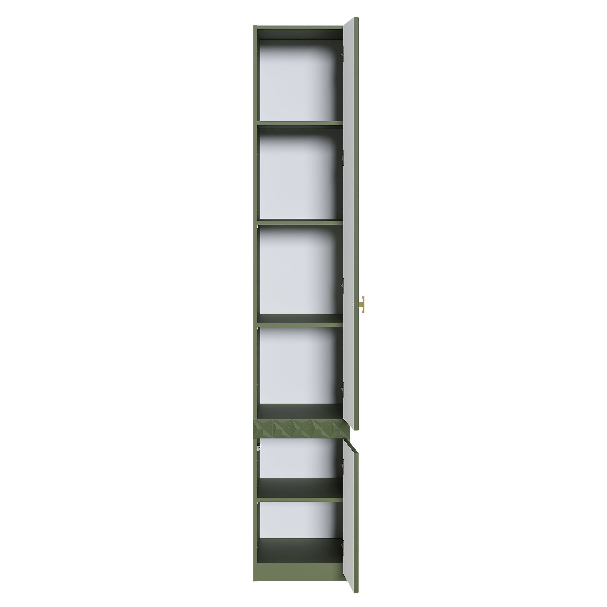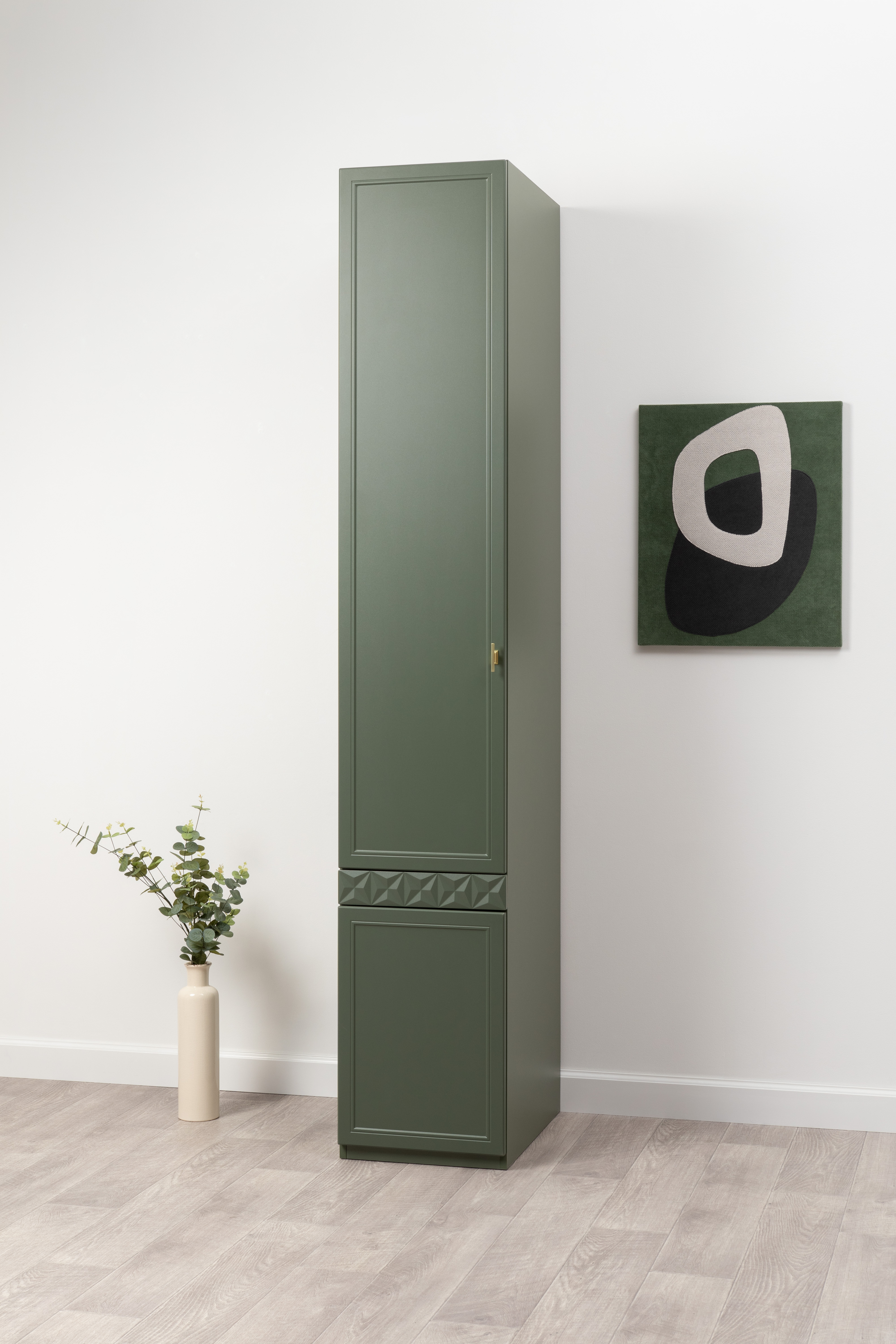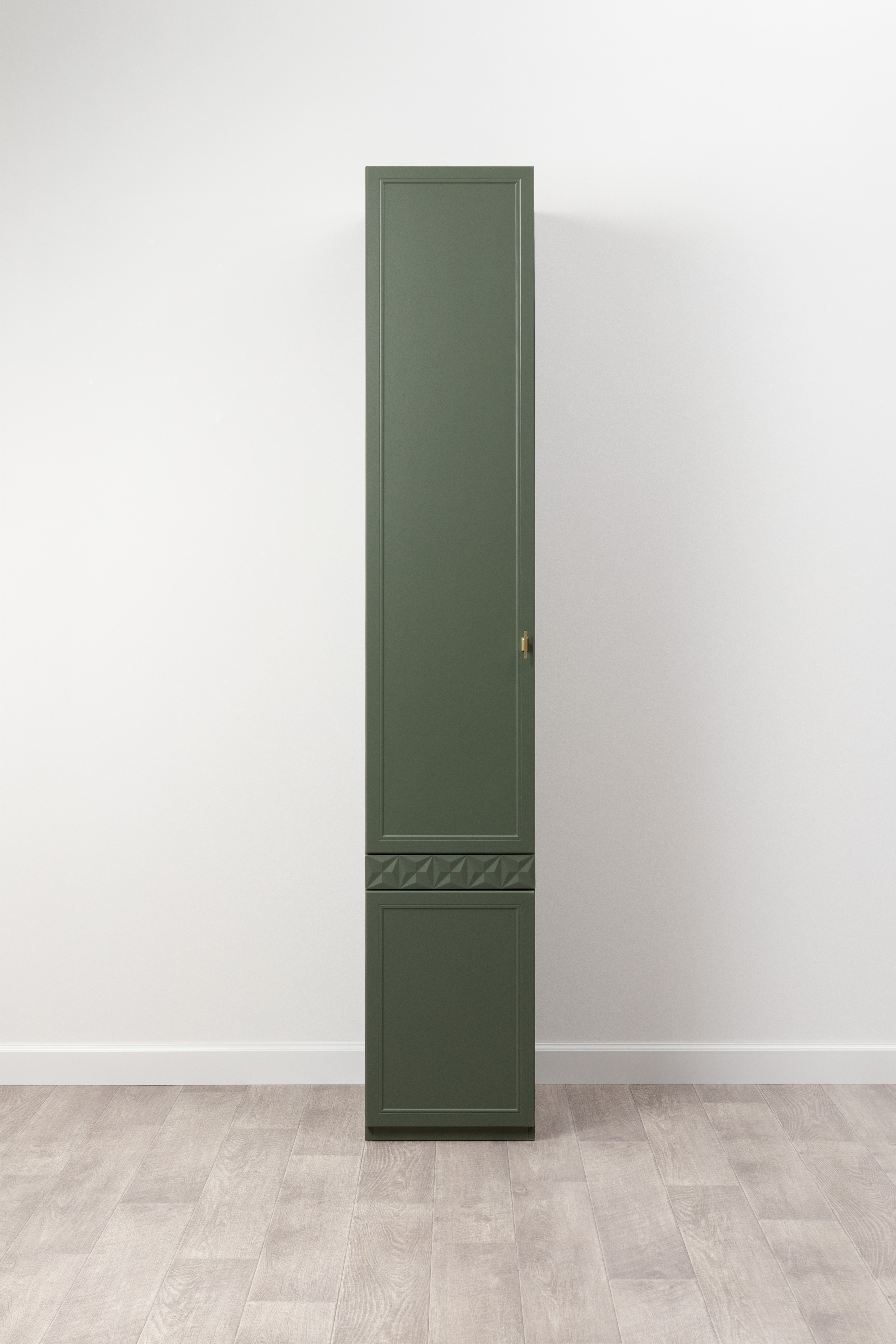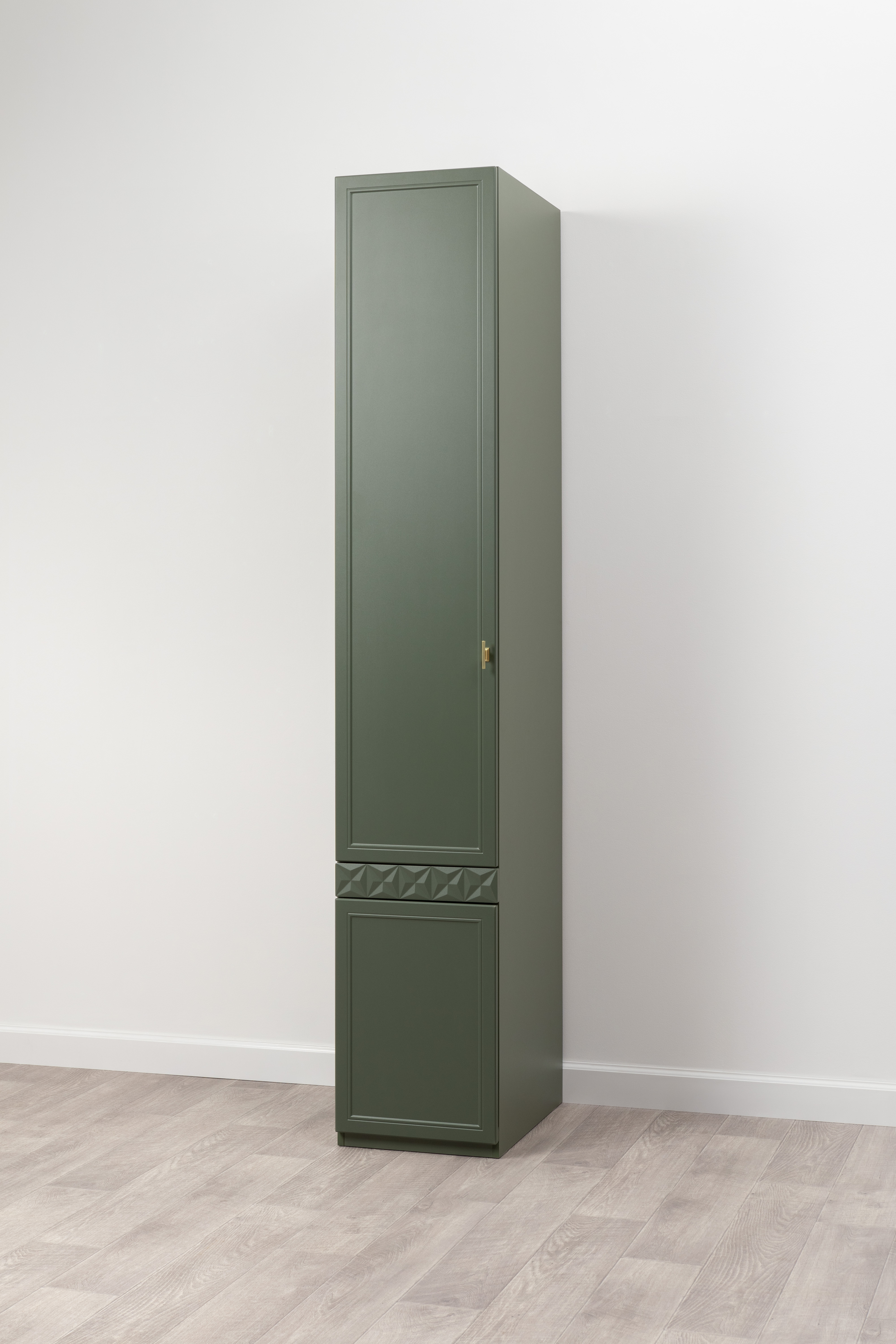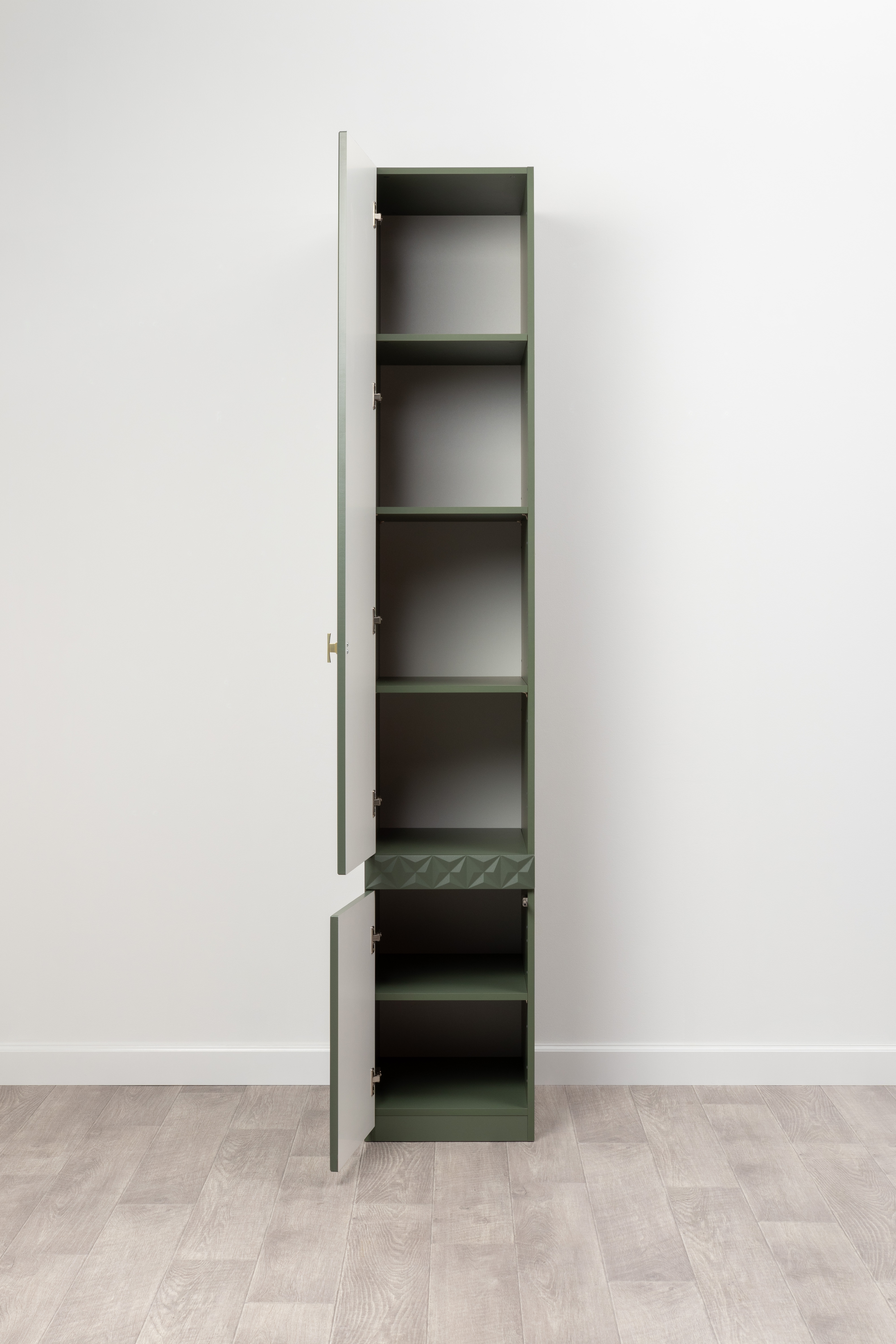 Шкаф-пенал Марион 16.340.01 дымчатый зеленый K521, олива шагрень AG 1050 ПВХ (собирается на любую сторону)