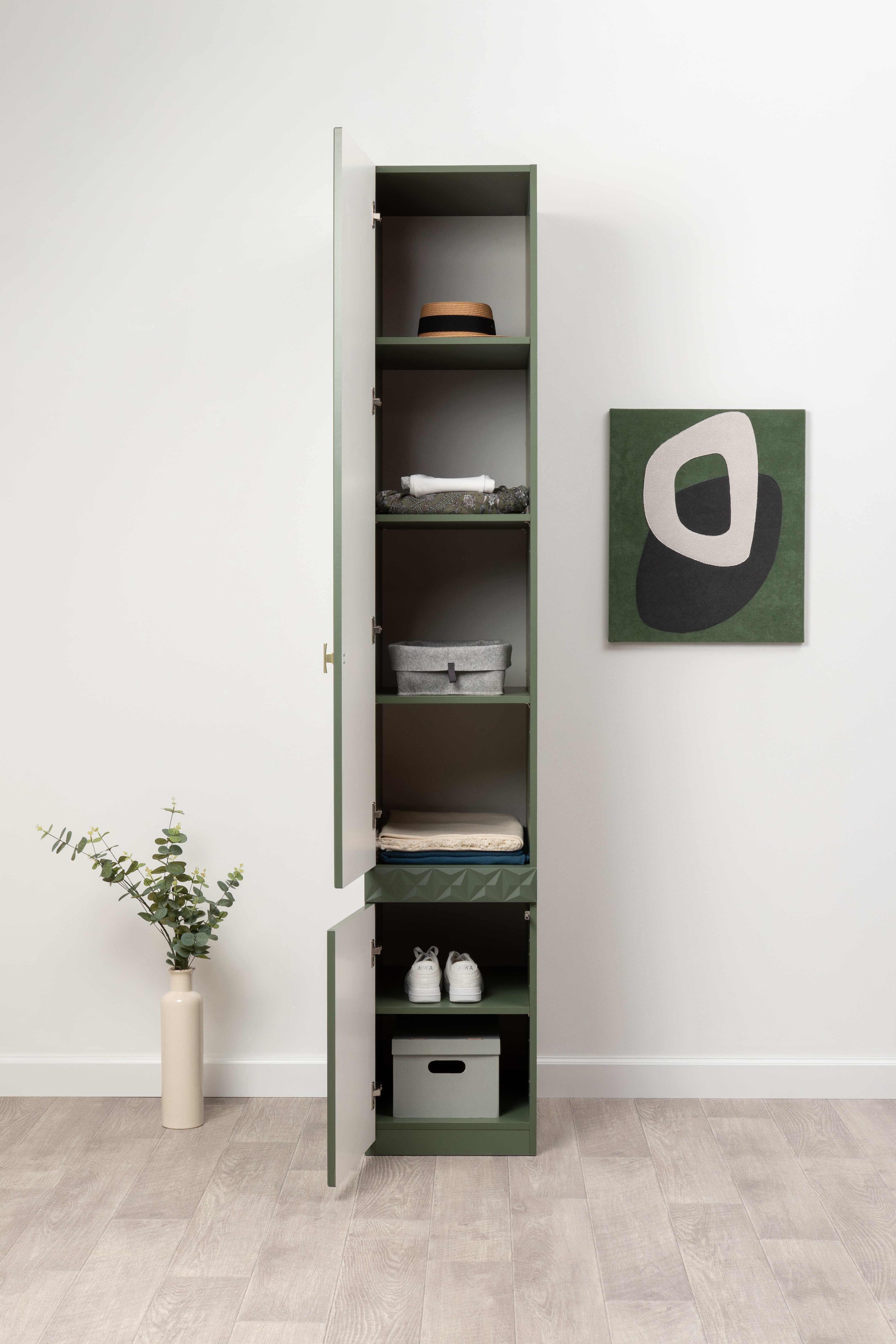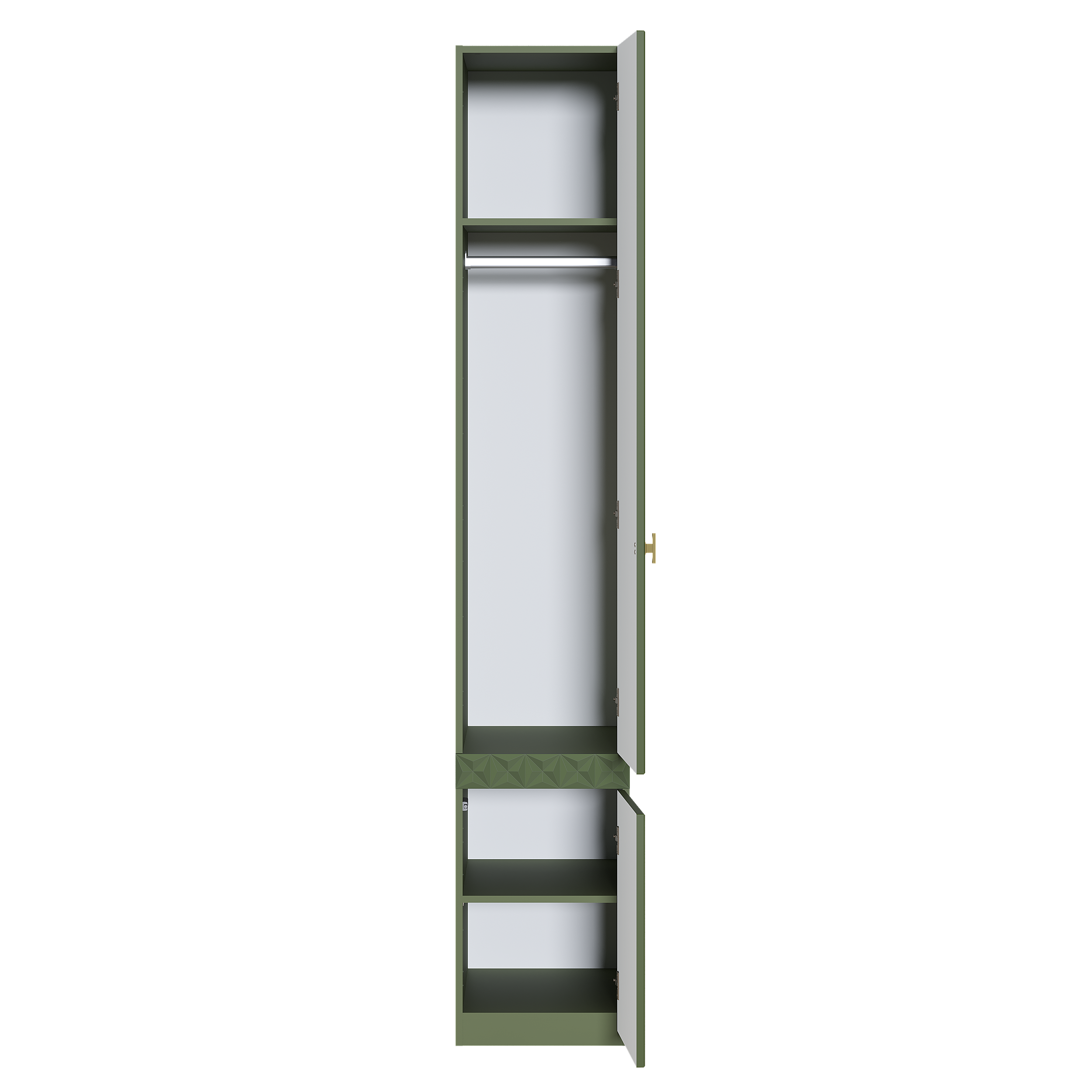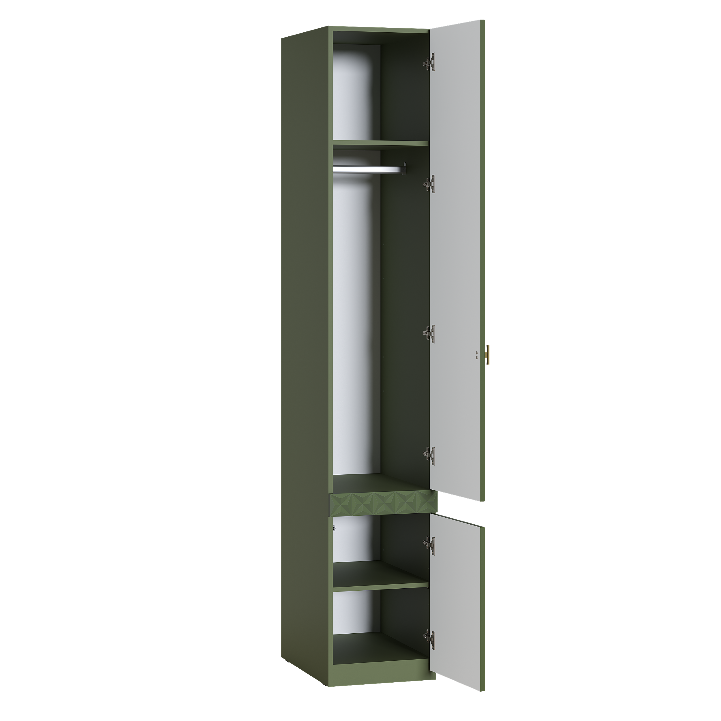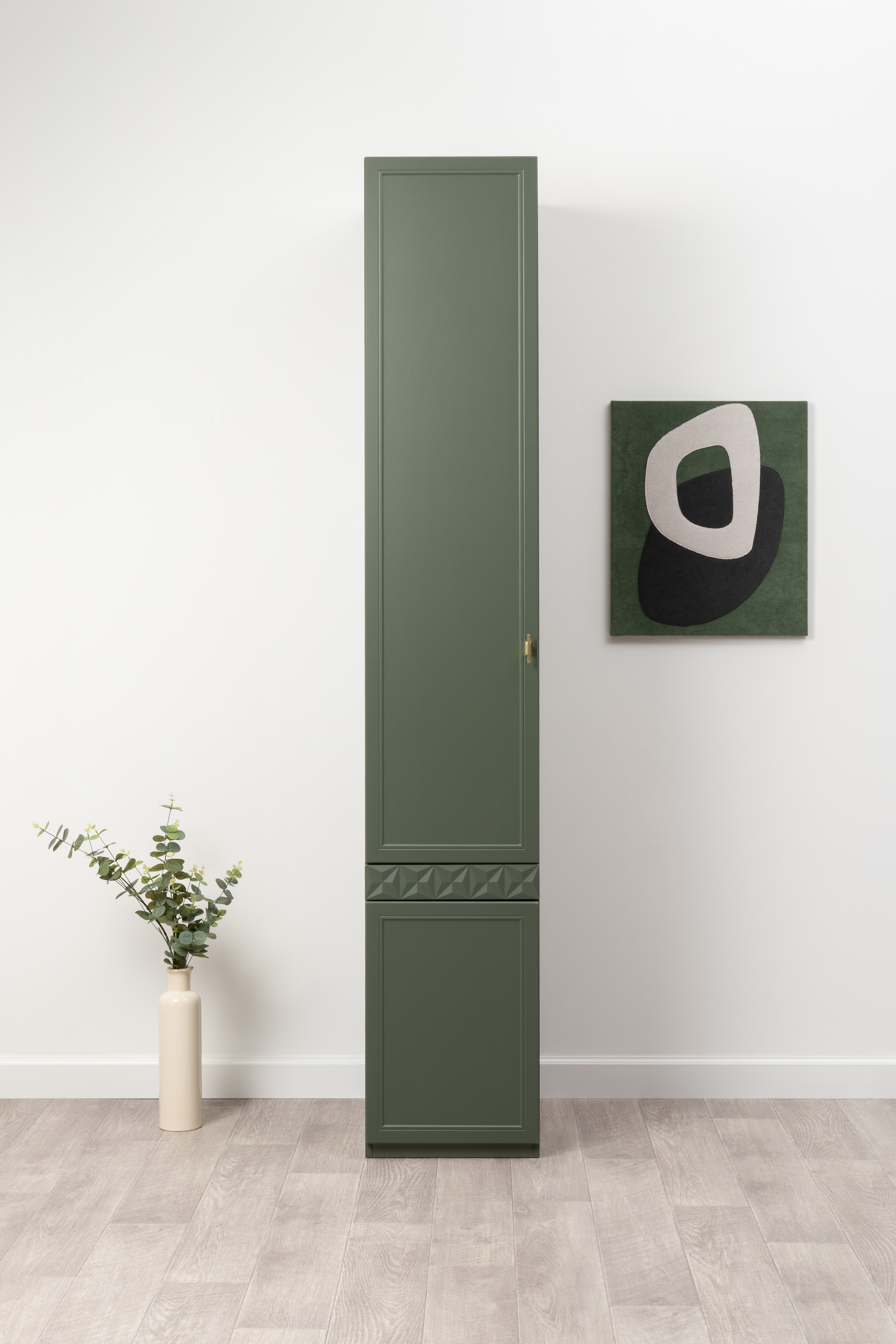 Шкаф-пенал Марион 16.340.01 дымчатый зеленый K521, олива шагрень AG 1050 ПВХ (собирается на любую сторону)