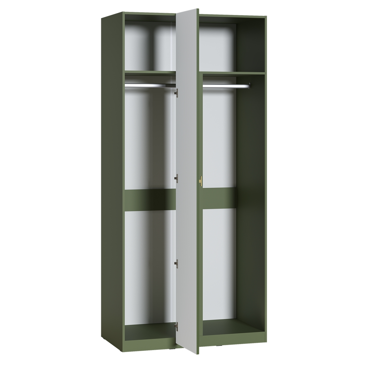 Изящные линии, глубокая фрезеровка фасадов из МДФ и благородные оттенки. Утончённая «Слоновая кость» и изысканная «Олива Шагрень» с глубоким зелёным тоном — создают атмосферу уюта, тепла и благородства. Металлические ручки и опоры золотого цвета придают мебели утончённый блеск, а петли и направляющие с доводчиками обеспечивают плавное и бесшумное закрытие фасадов.