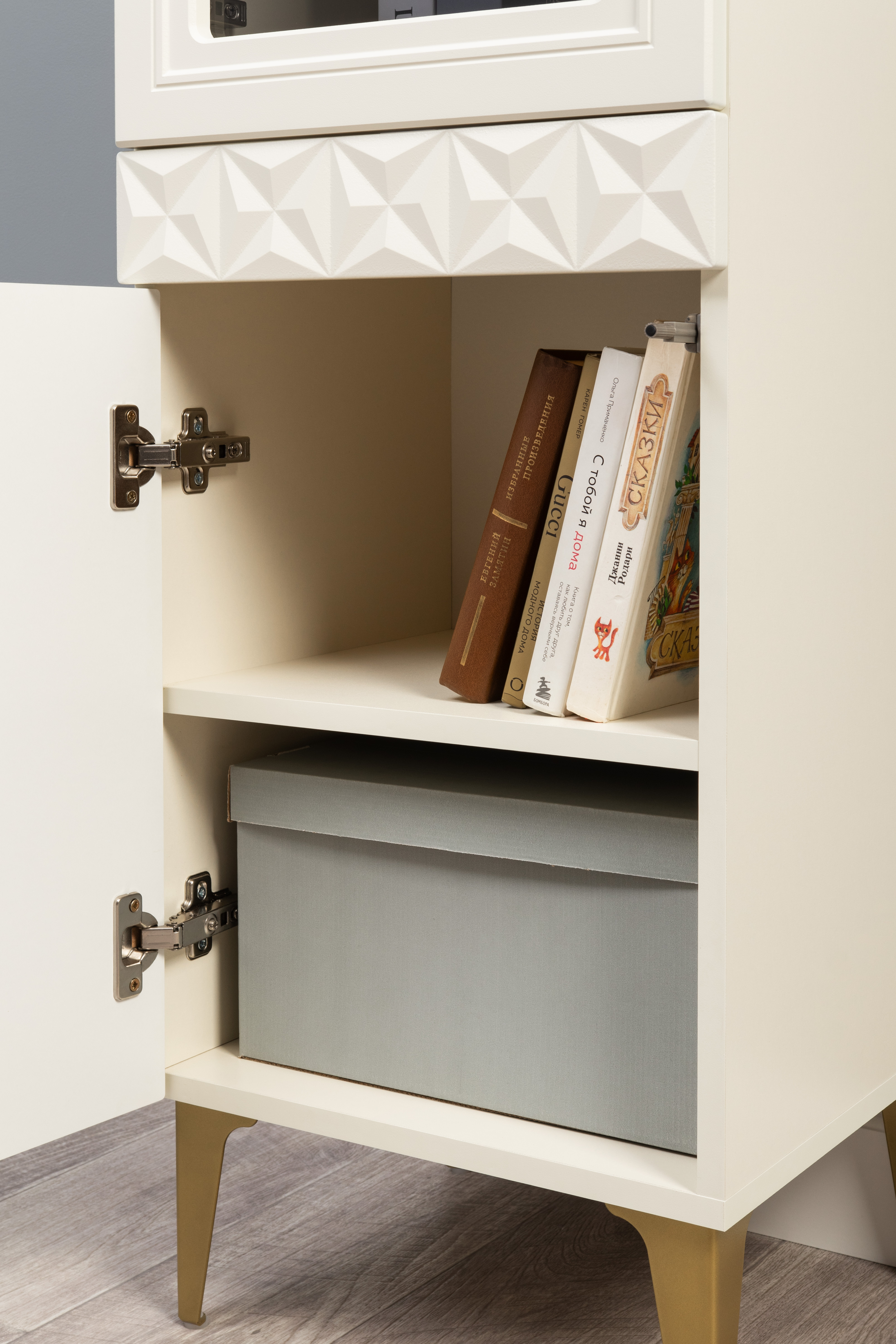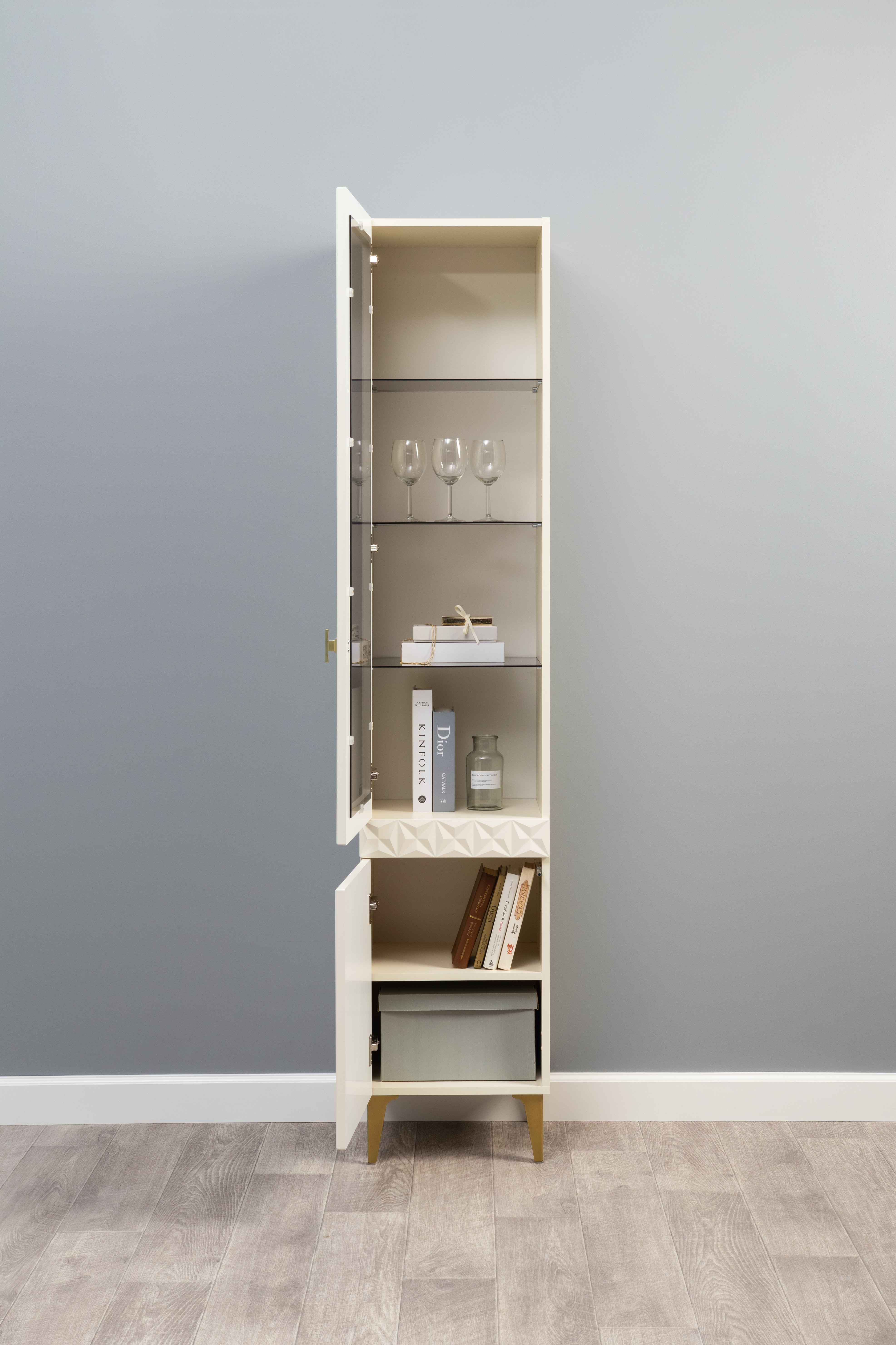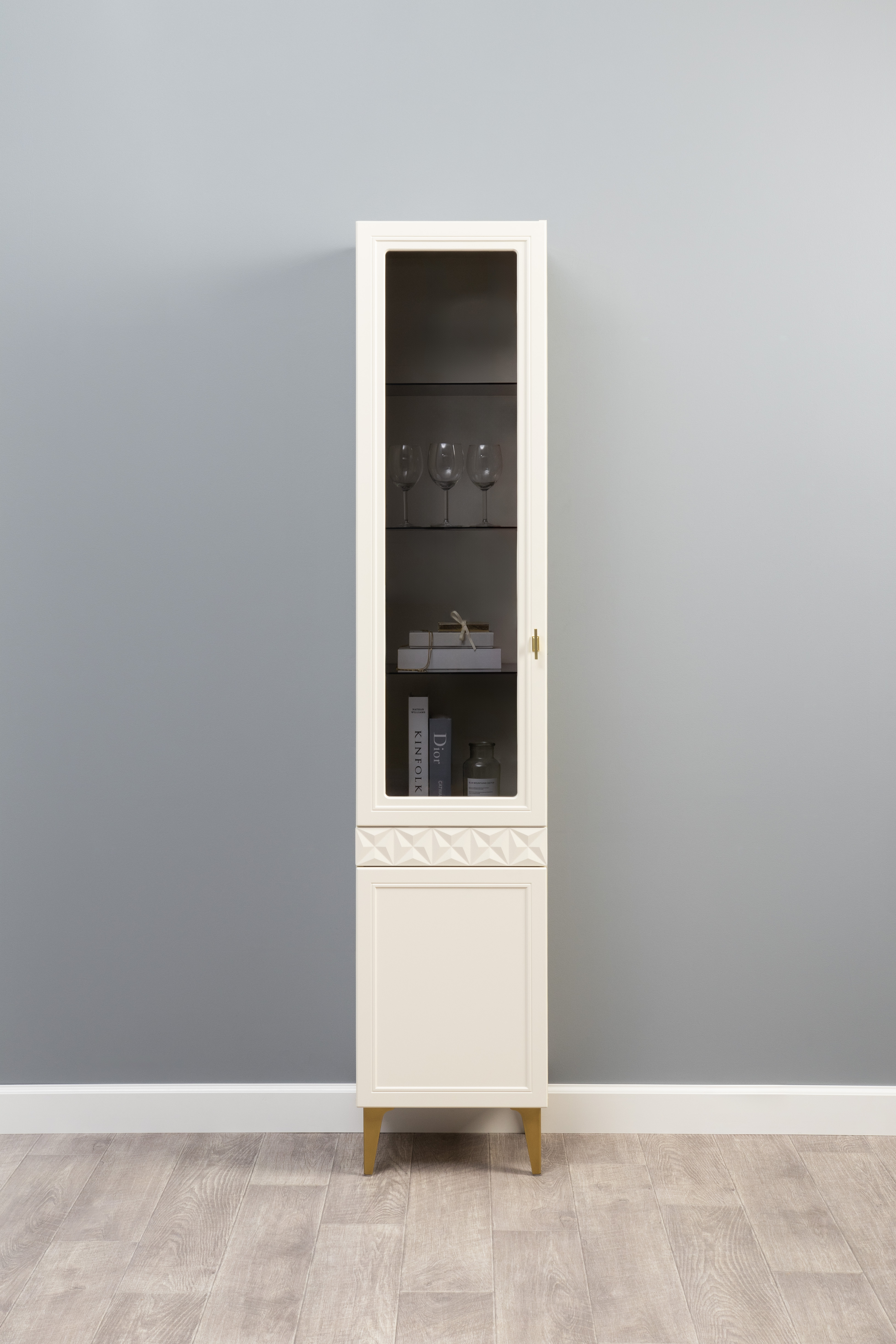 В коллекции представлены три типа витрин с тонированным закалённым стеклом, которые придают пространству лёгкость и свет. «Марион» — идеальное сочетание традиций и актуального дизайна в каждой детали.
