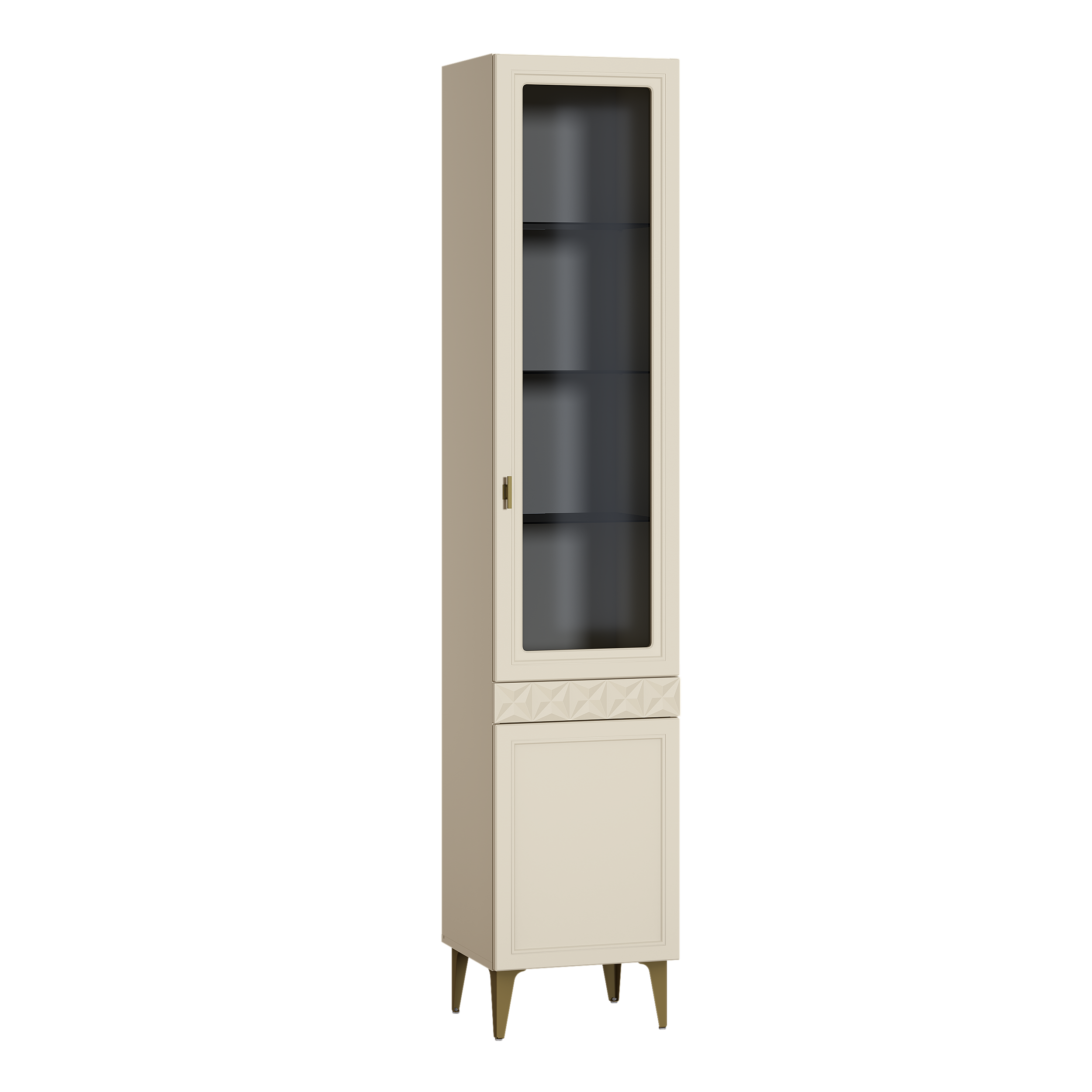Шкаф-витрина Марион 16.397.01 слоновая кость С341 PE, слоновая кость 6898 ПВХ (собирается на любую сторону)