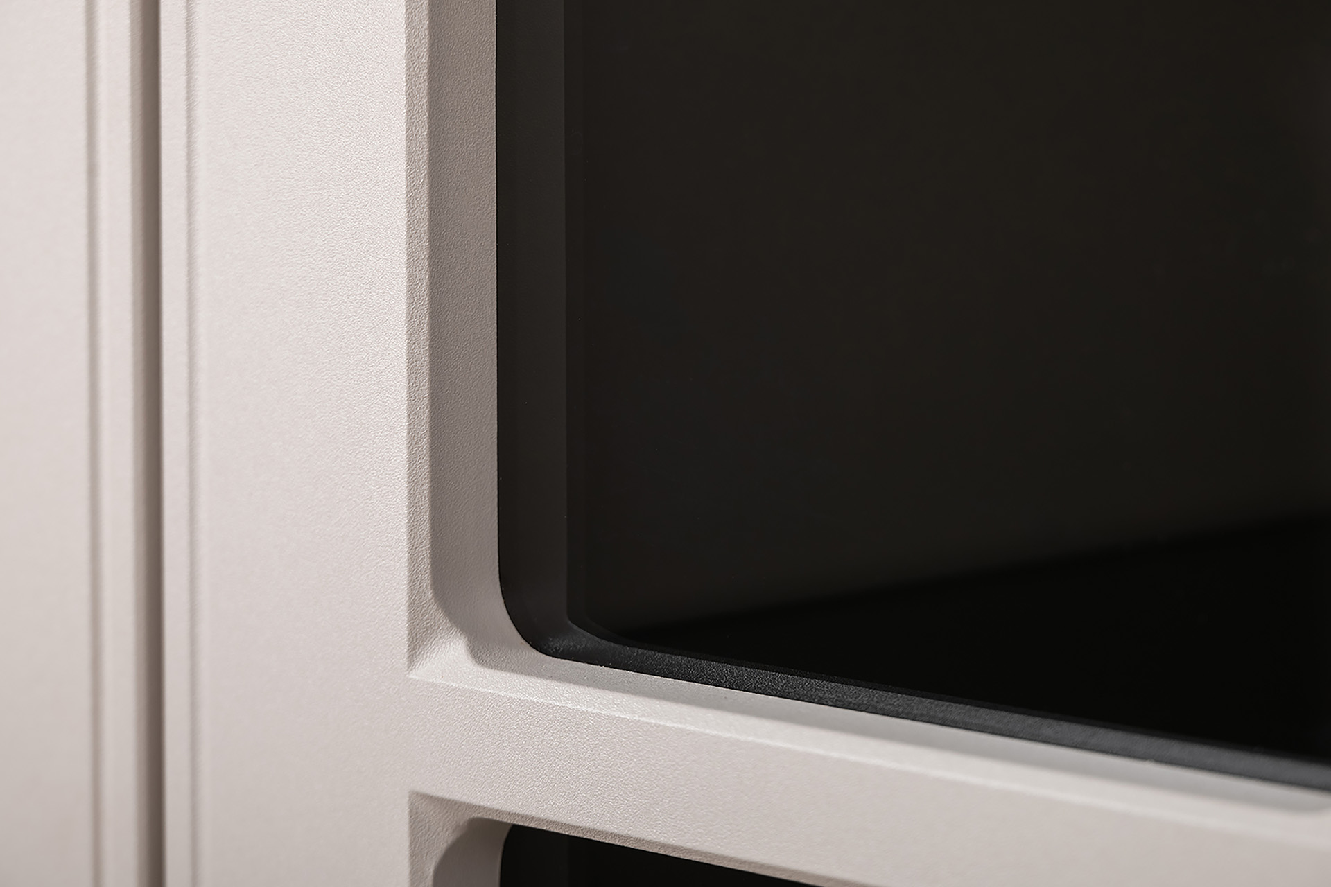 Петли с доводчиками, полное выдвижение ящиков, выдвижная штанга в шкафу для одежды и съемные полки делают использование максимально комфортным.