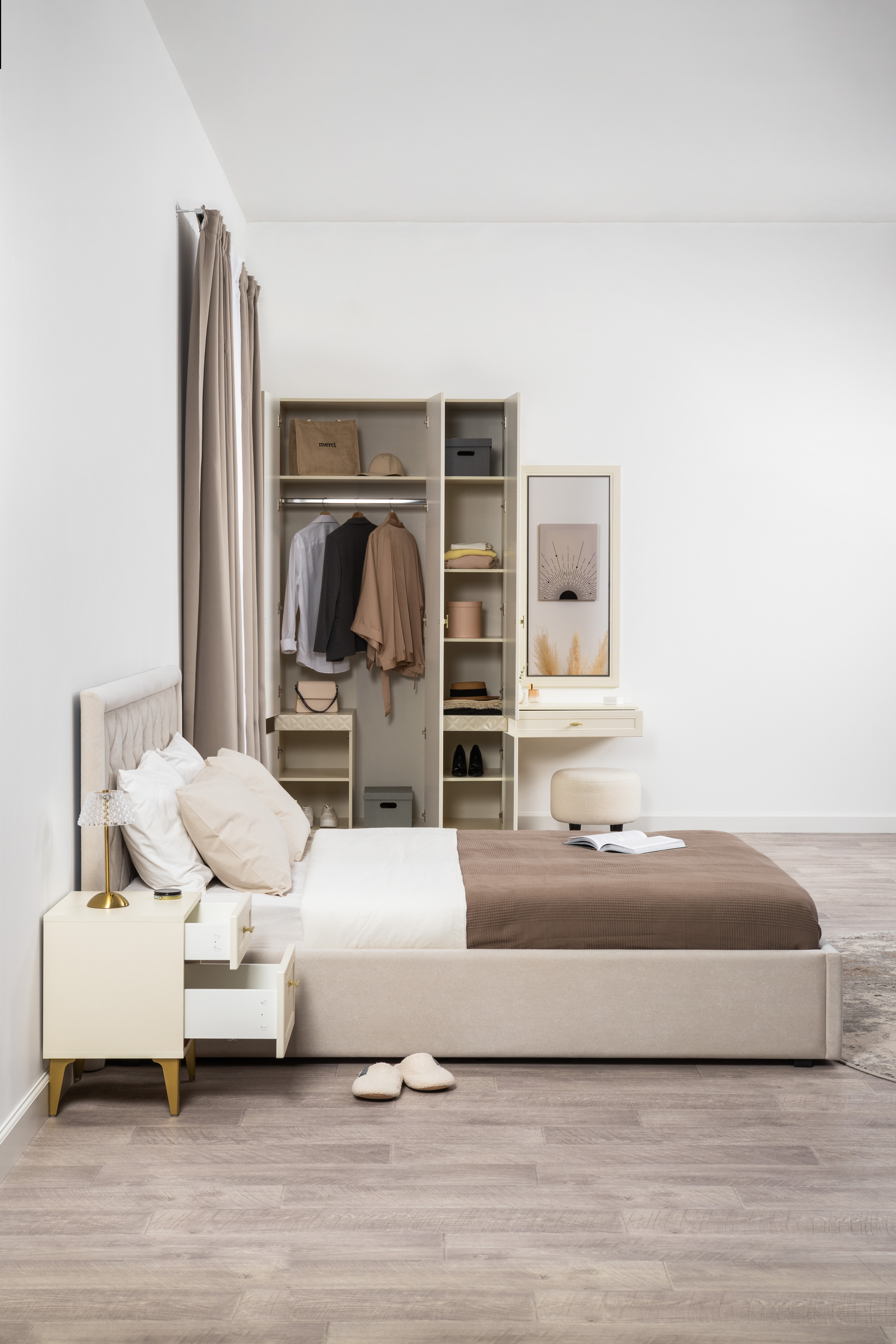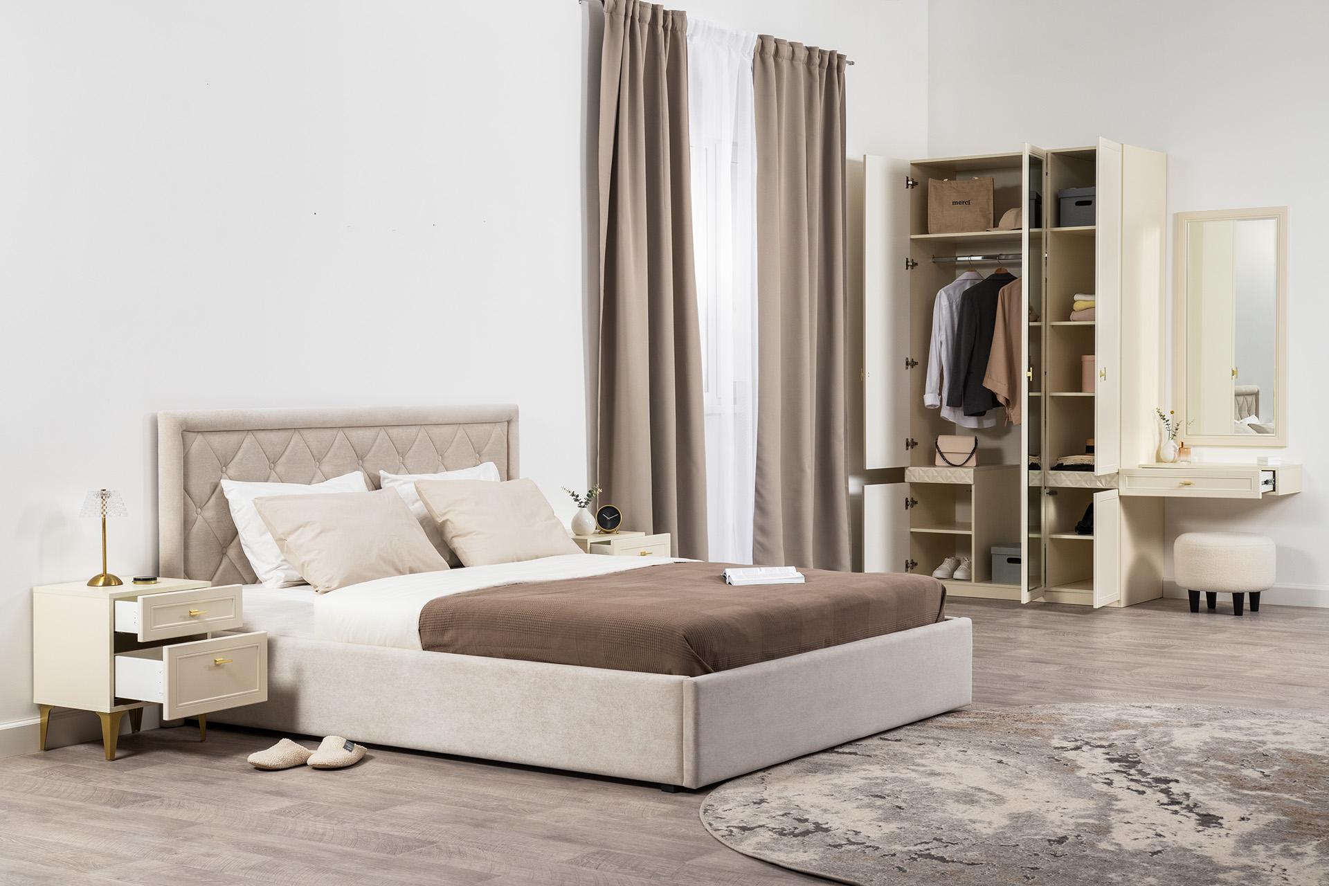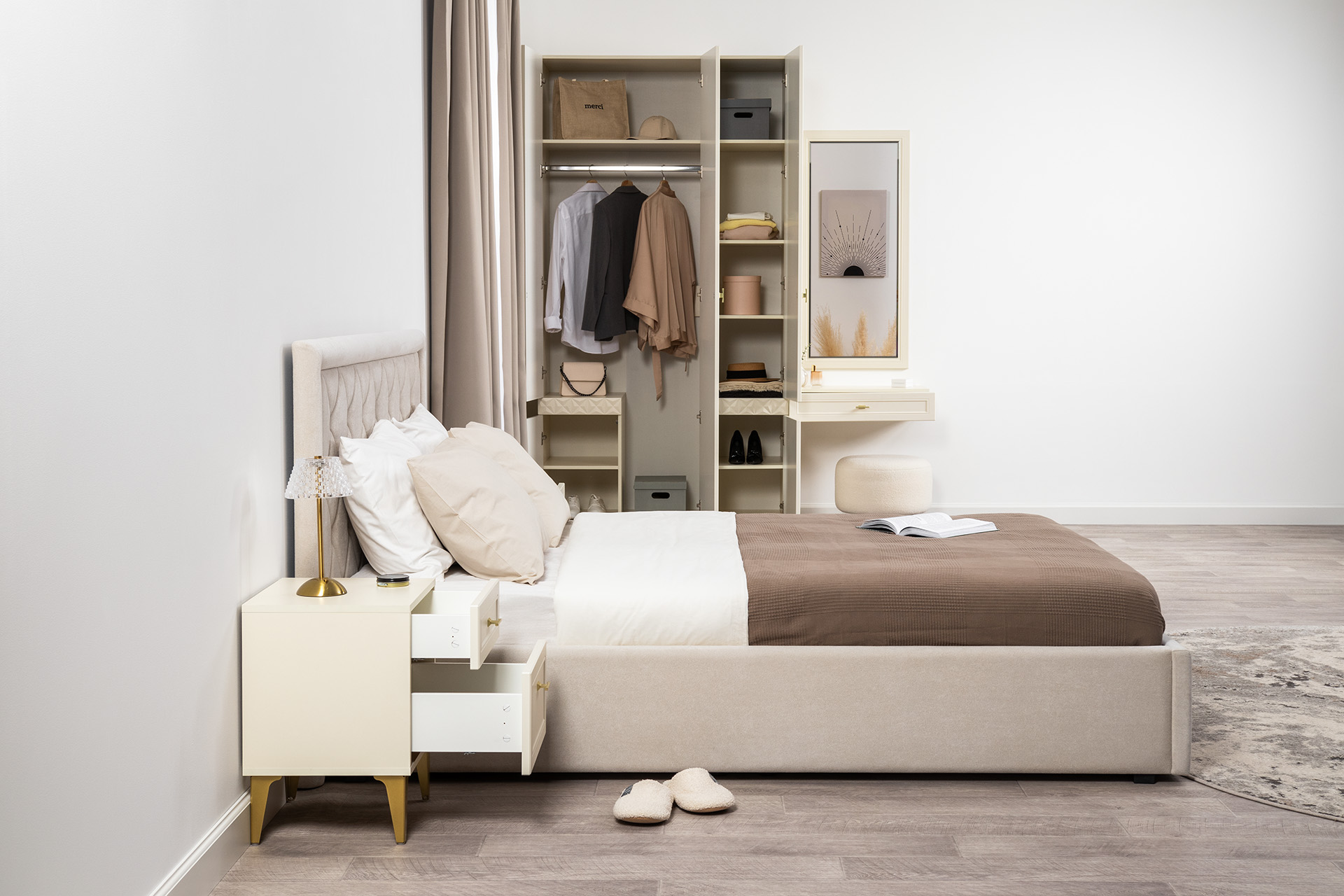 Тумба прикроватная Амьен 16.08 плэйн, веллюто капучино ПВХ