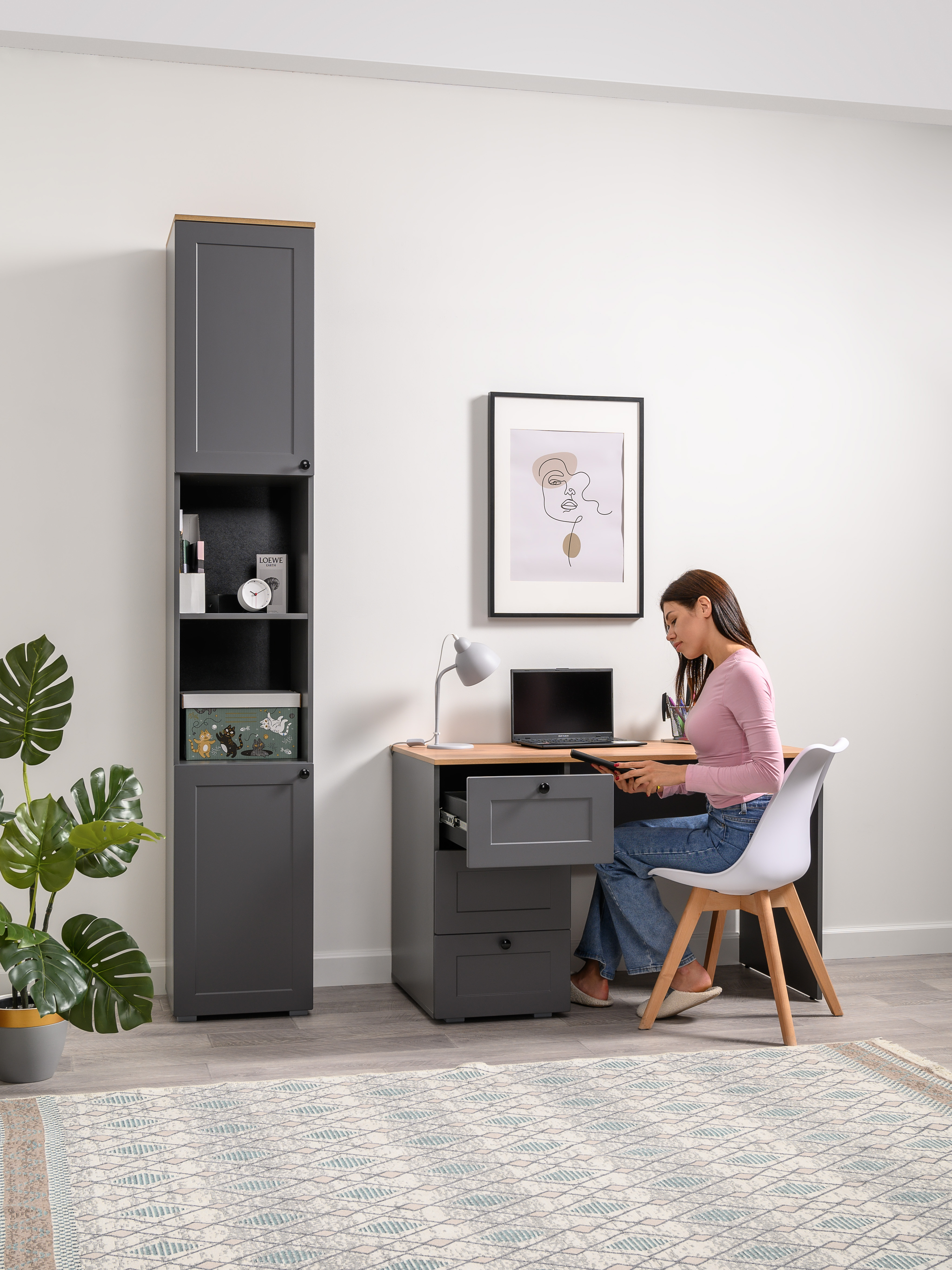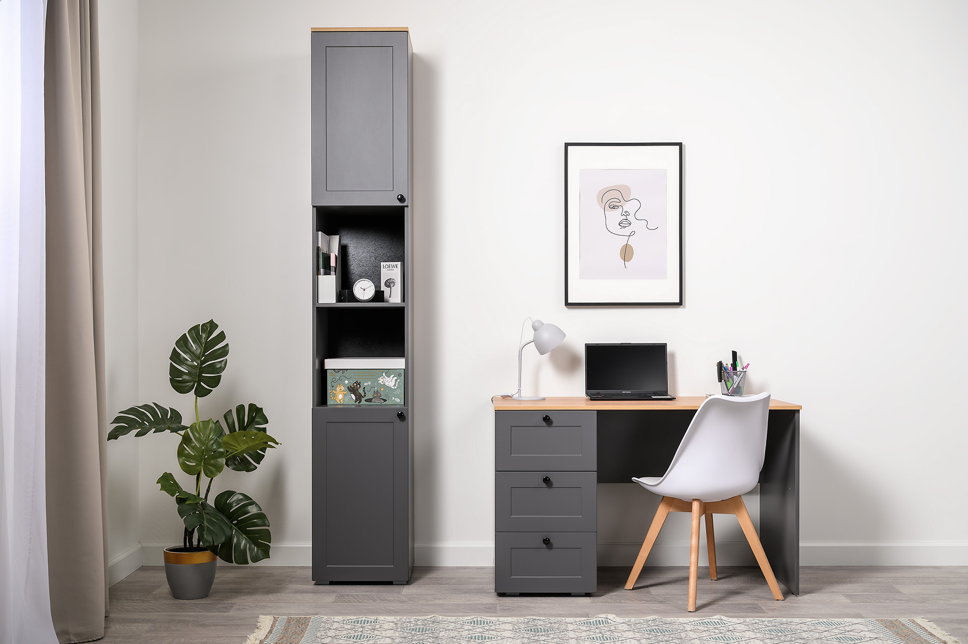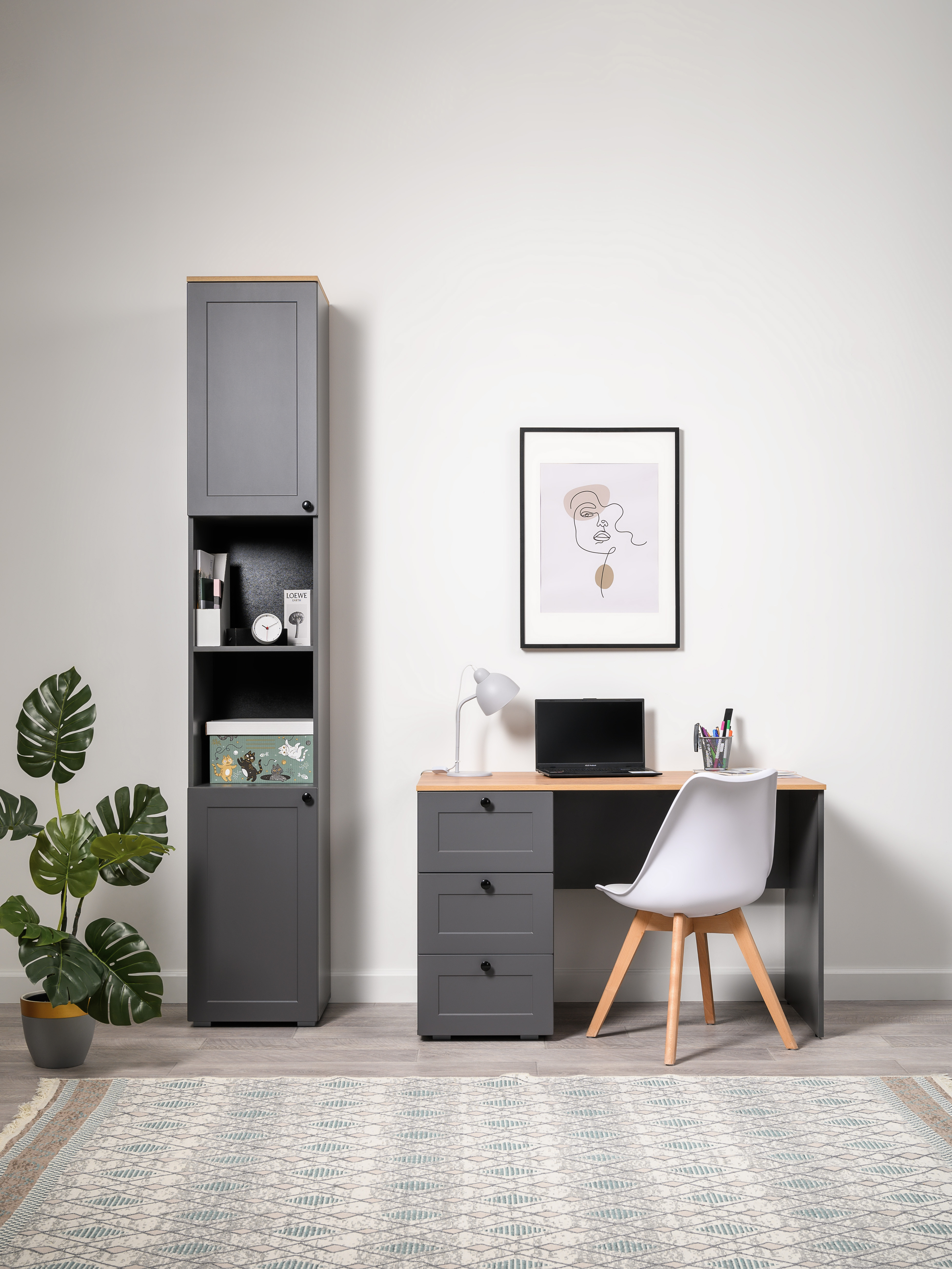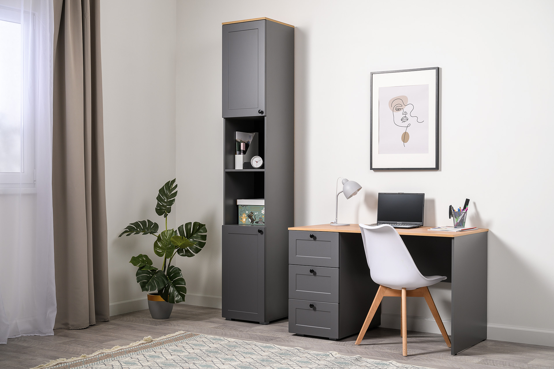 Шкаф-пенал Остин 13.225 серый графит, дуб вотан, серый графит ПВХ