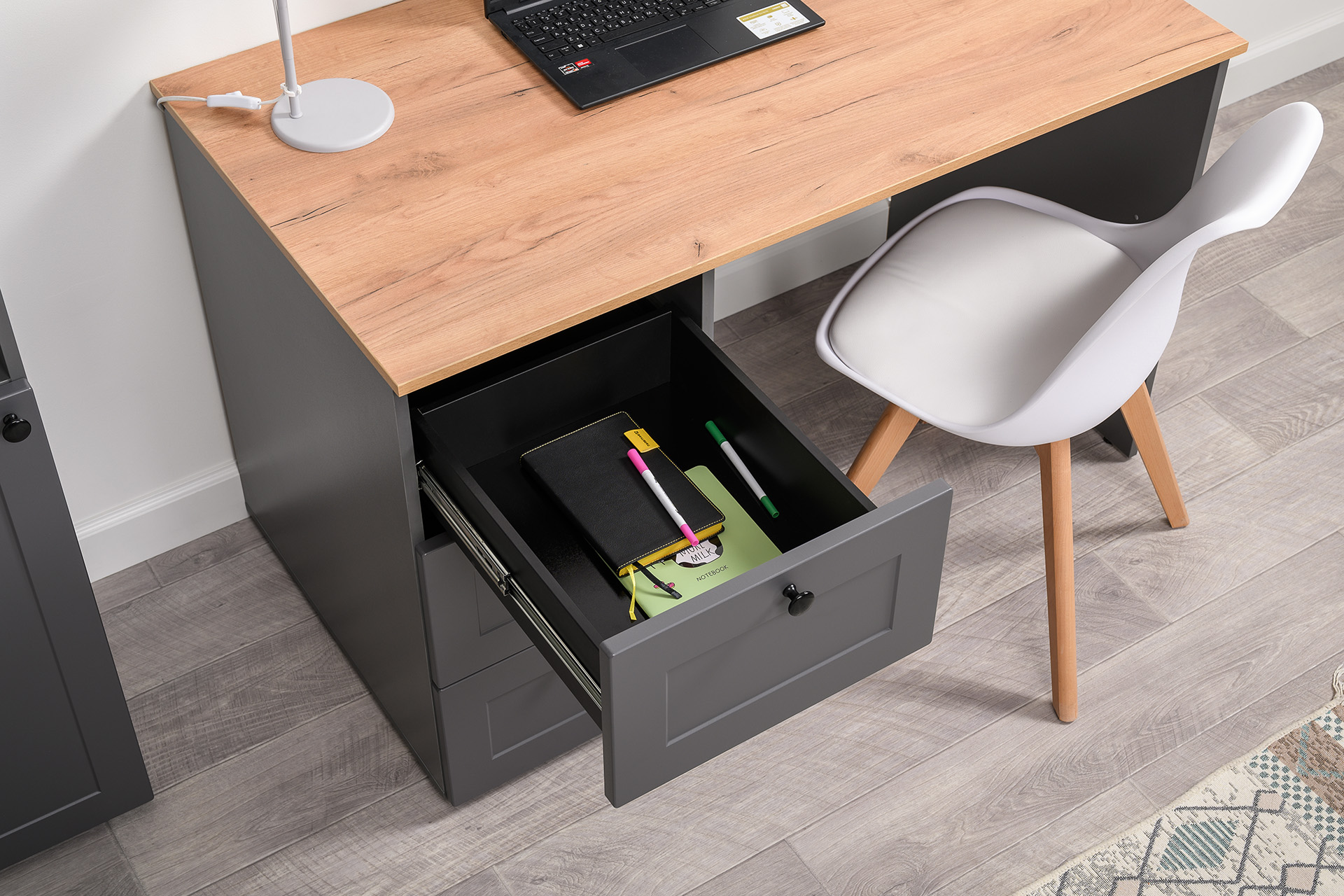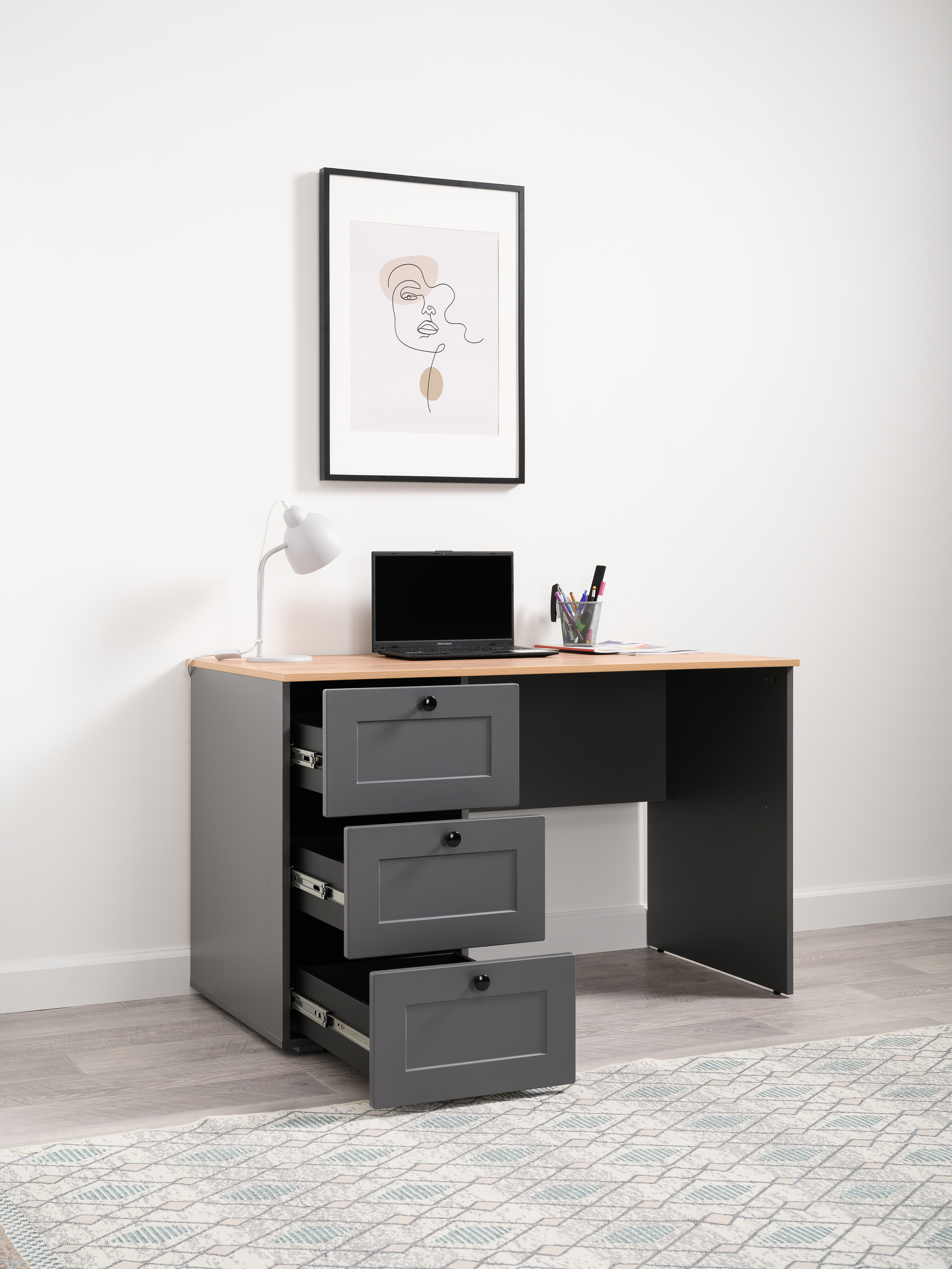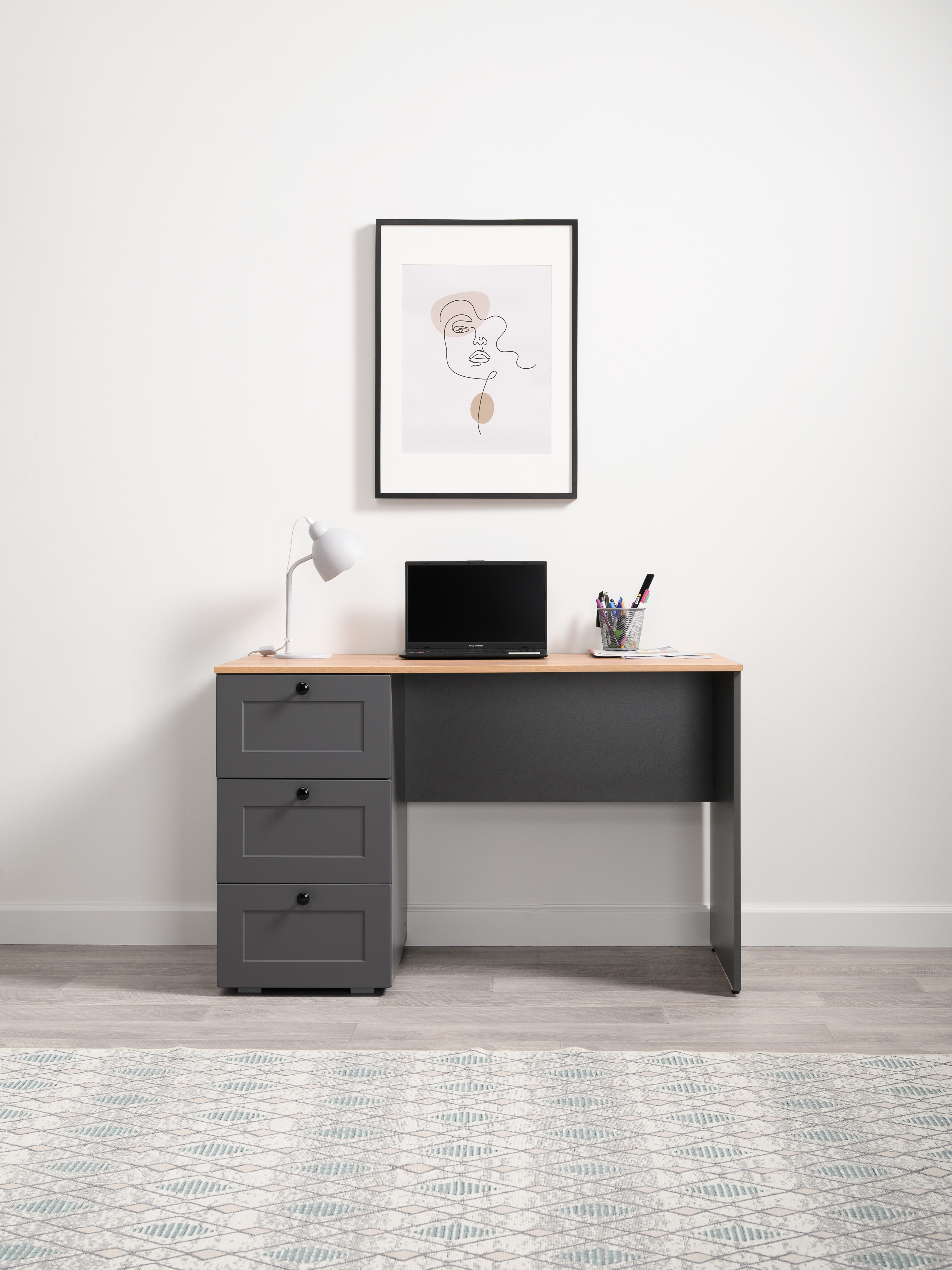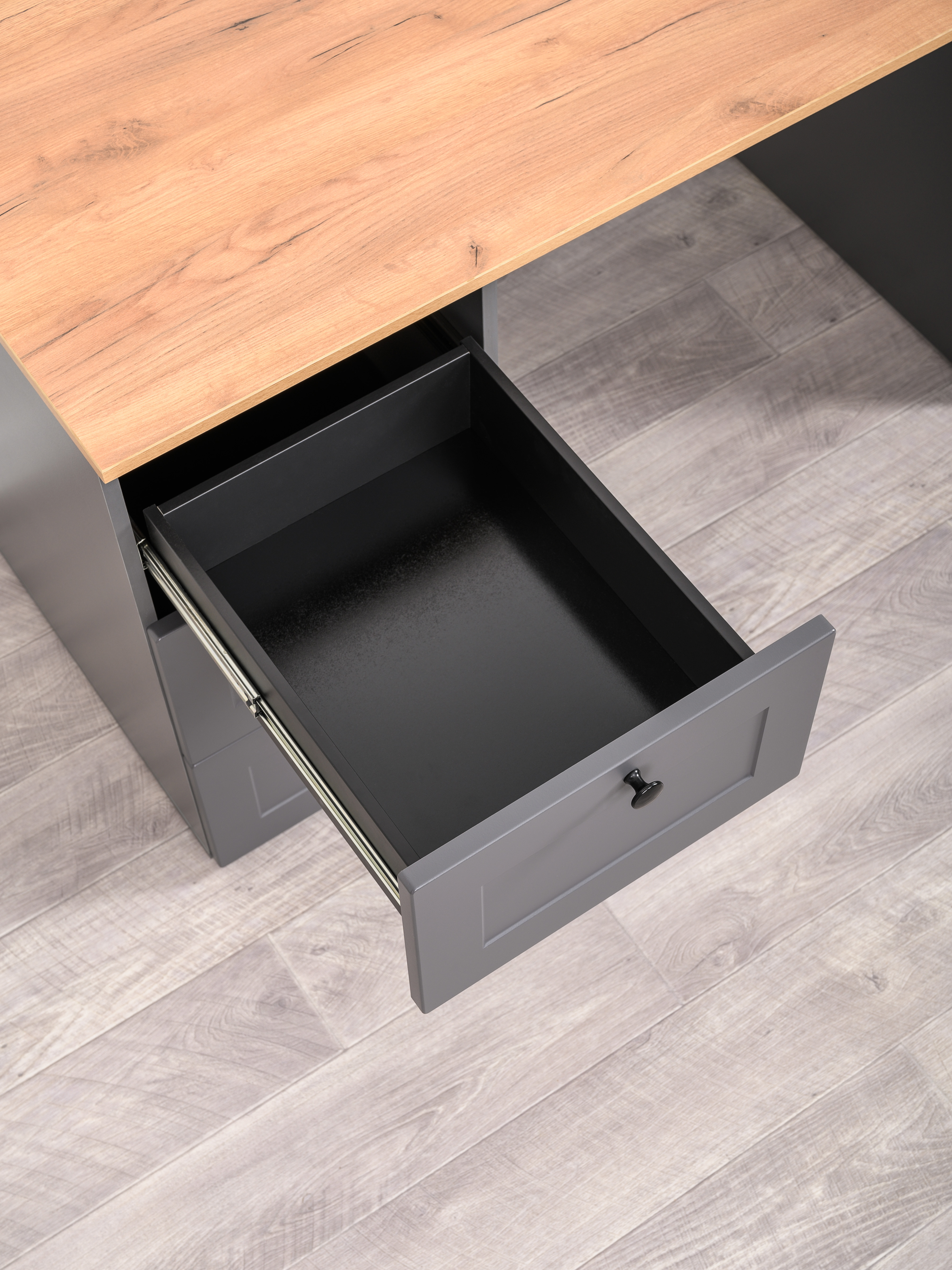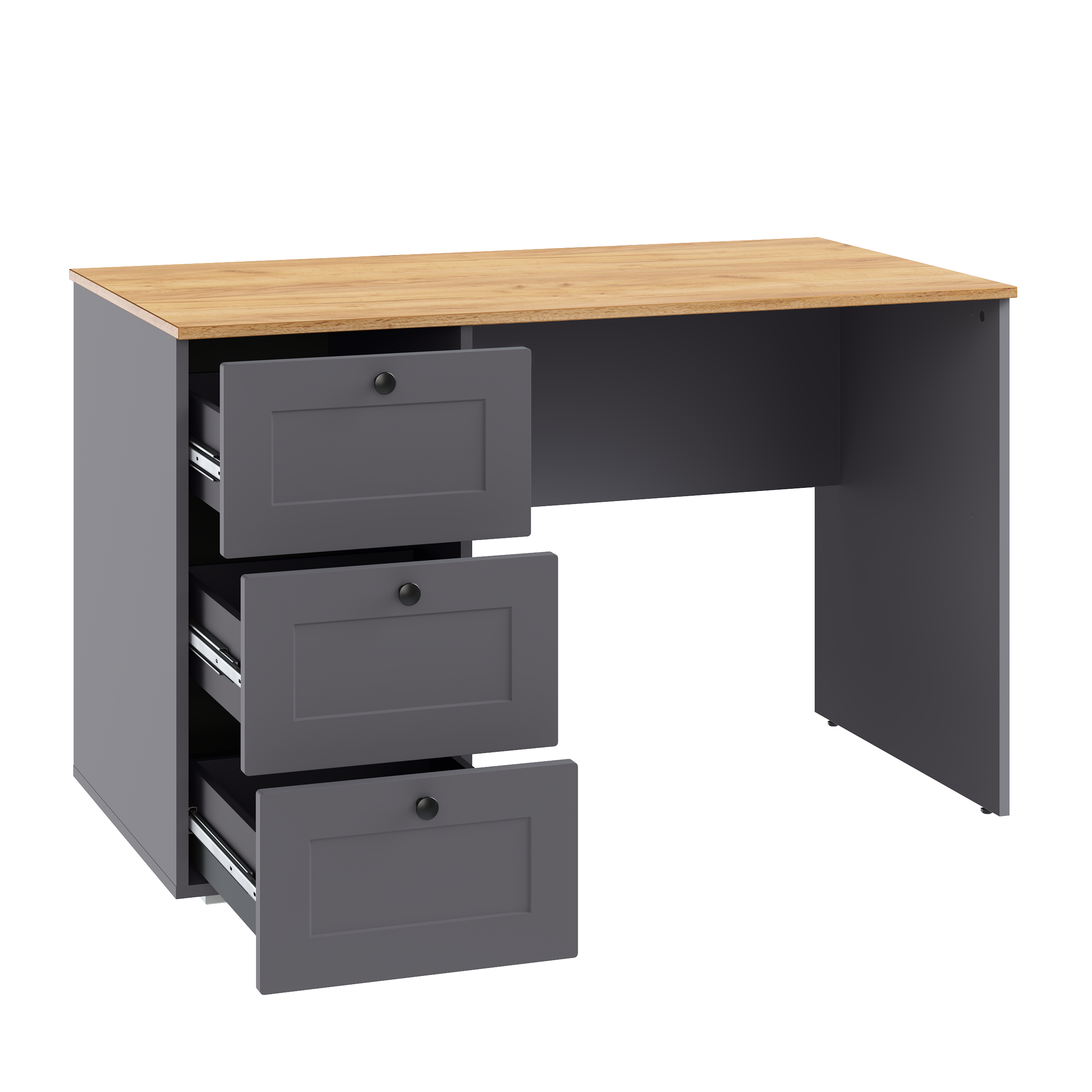 Стол письменный Остин 12.159 серый графит 0162 РЕ, дуб золотой CRAFT, графит ZB 856-2 ПВХ, сборка на любую сторону