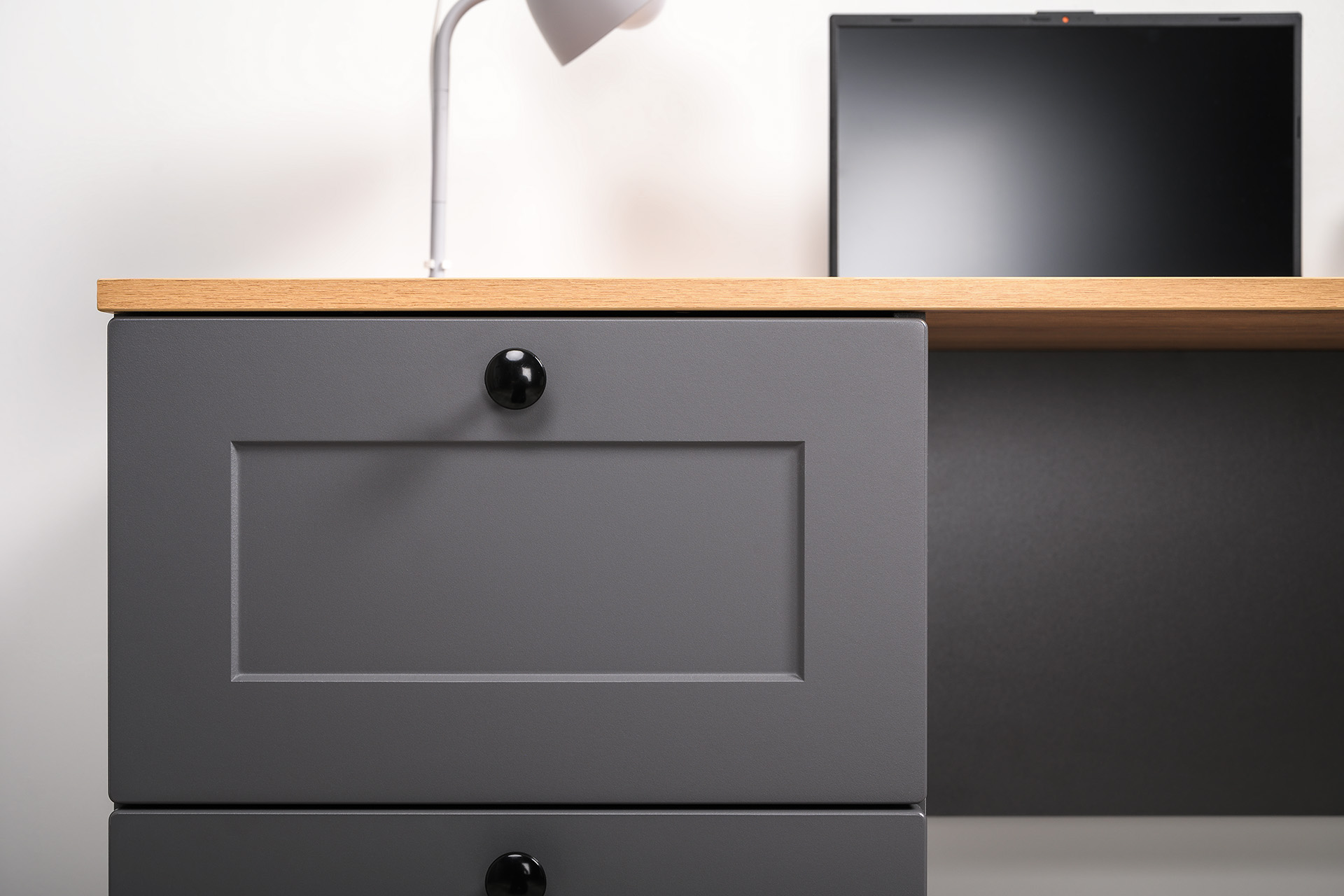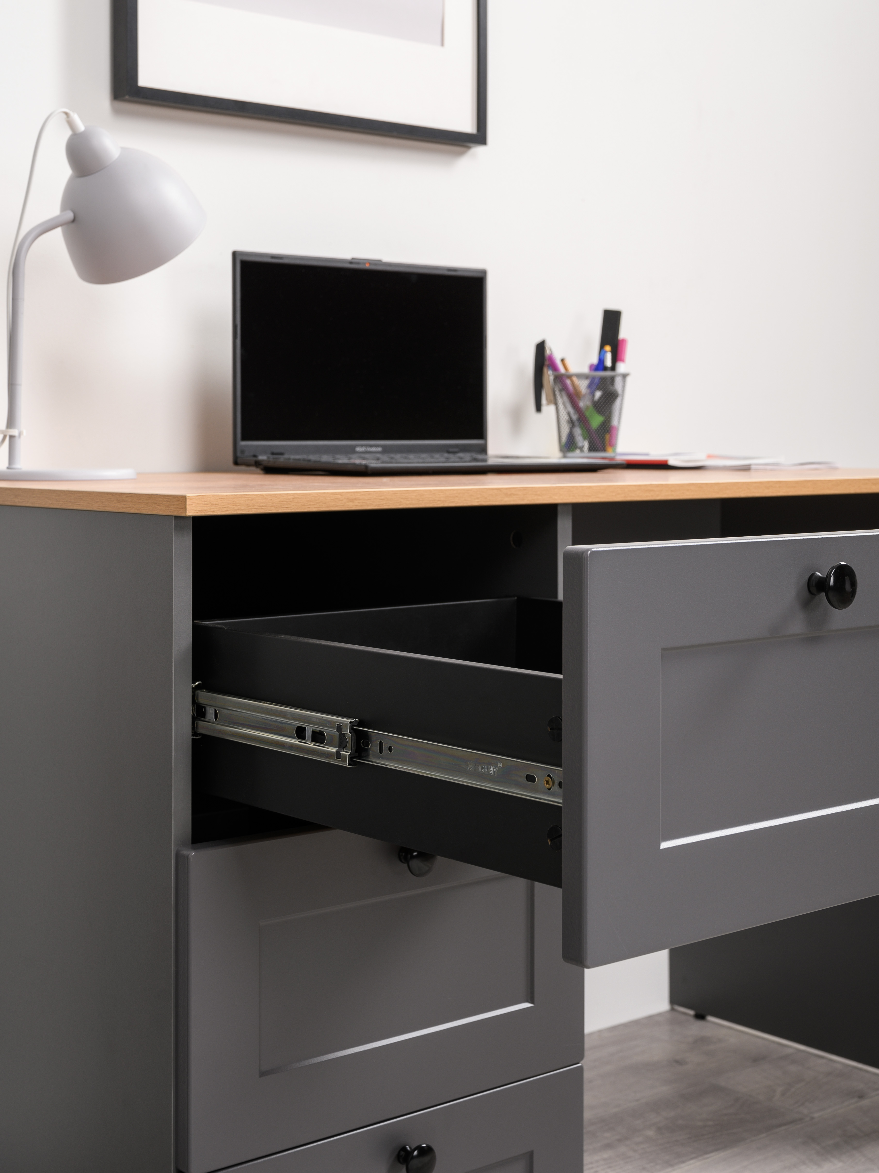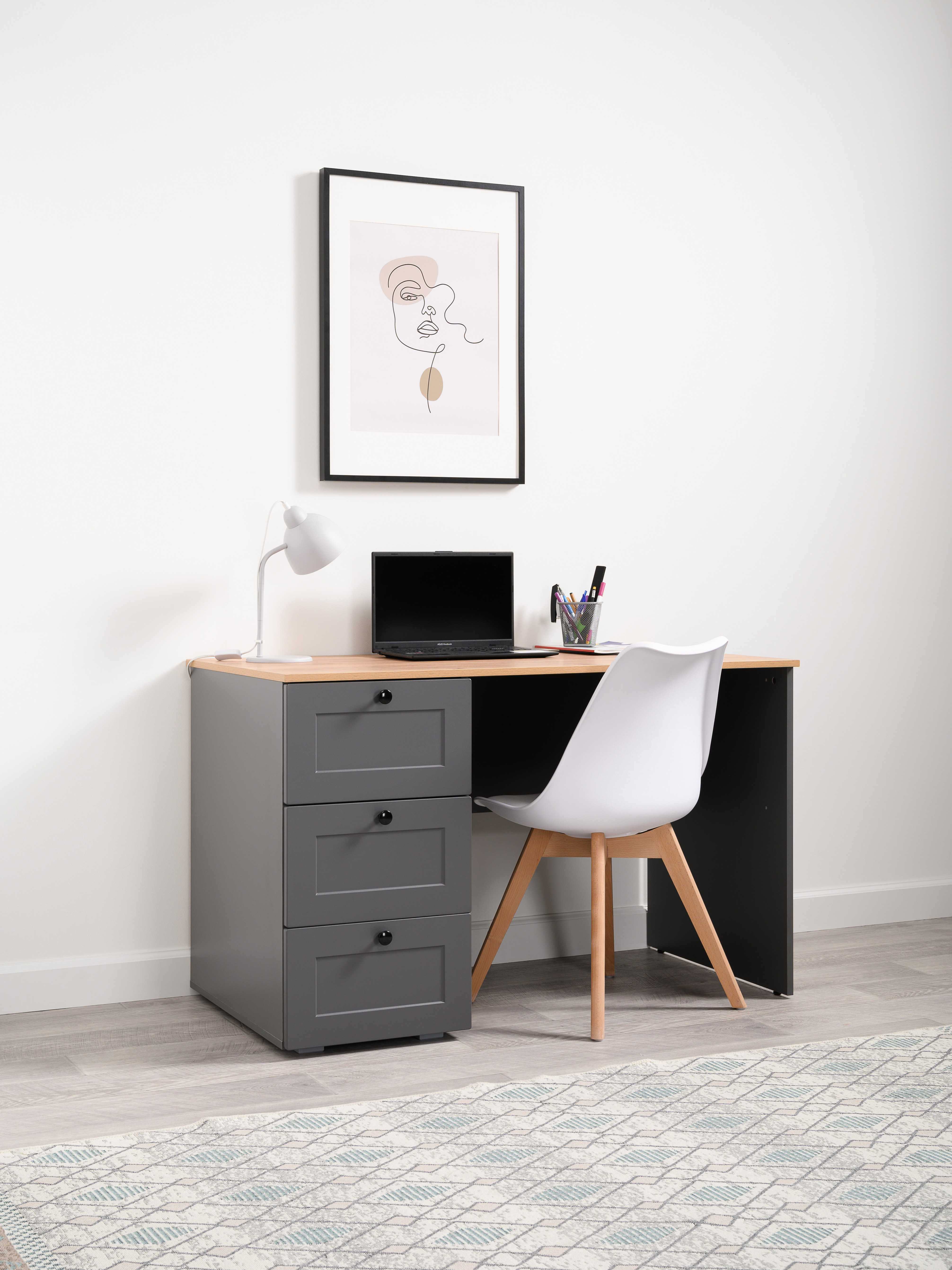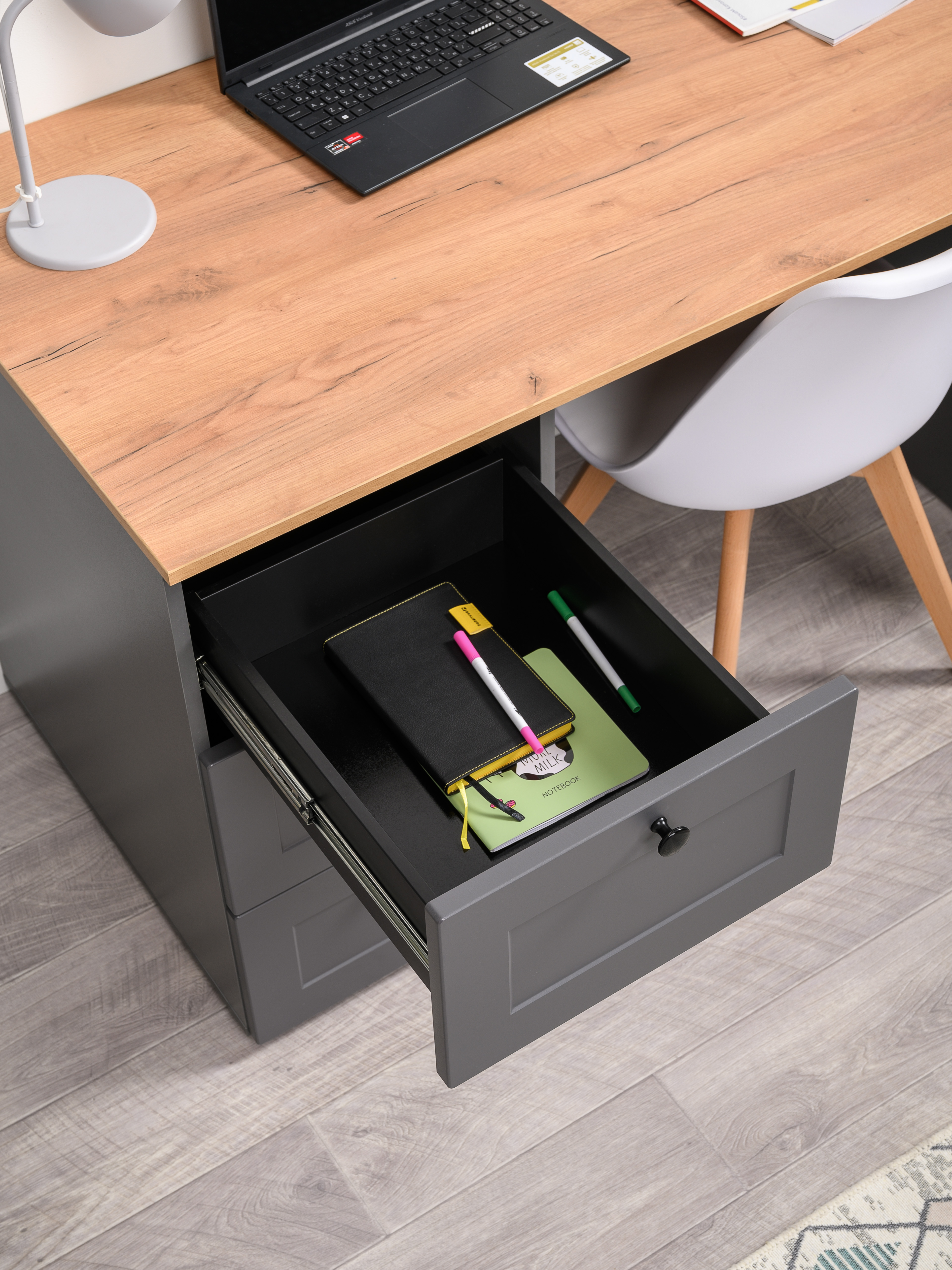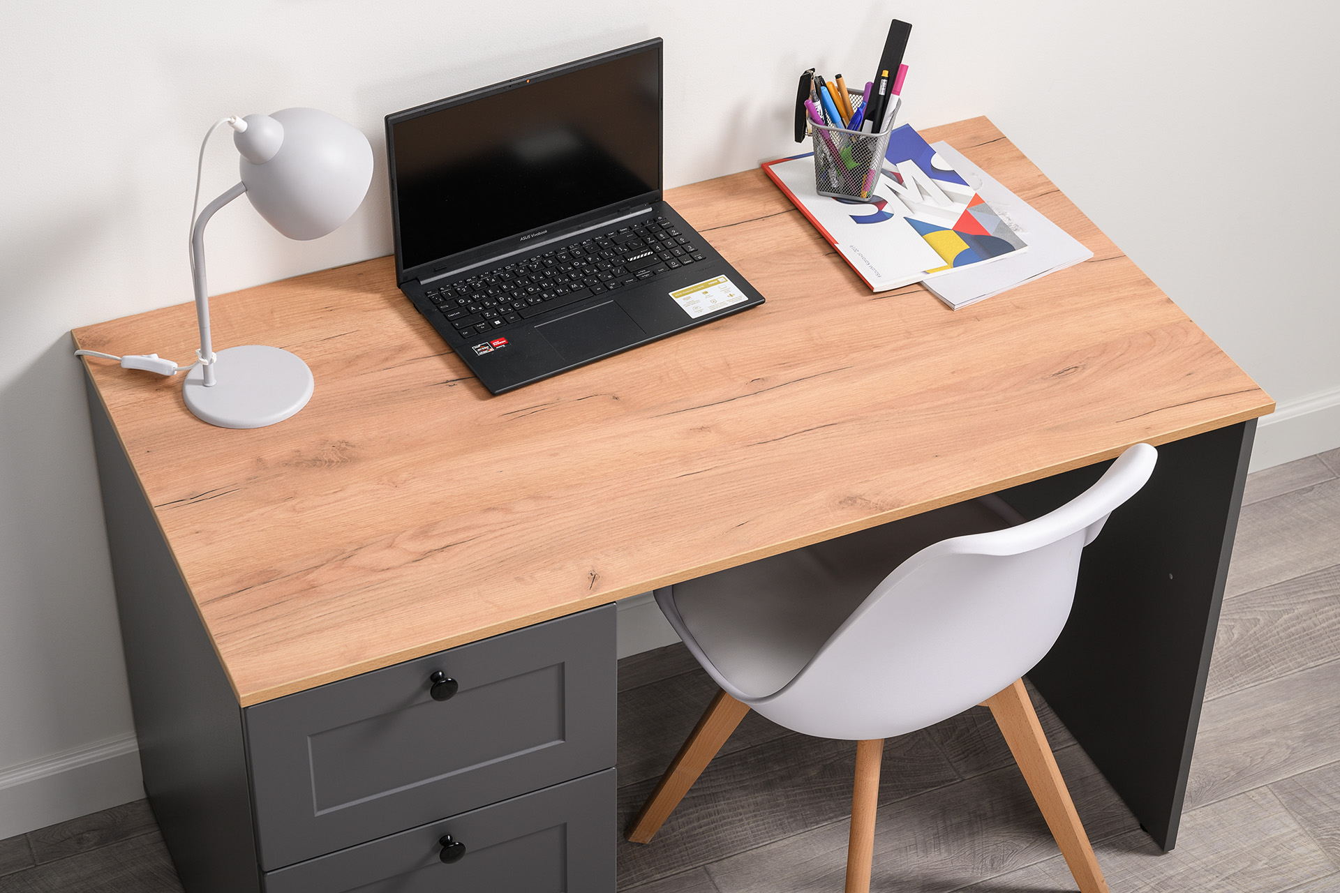Стол письменный Остин 12.159 серый графит 0162 РЕ, дуб золотой CRAFT, графит ZB 856-2 ПВХ, сборка на любую сторону