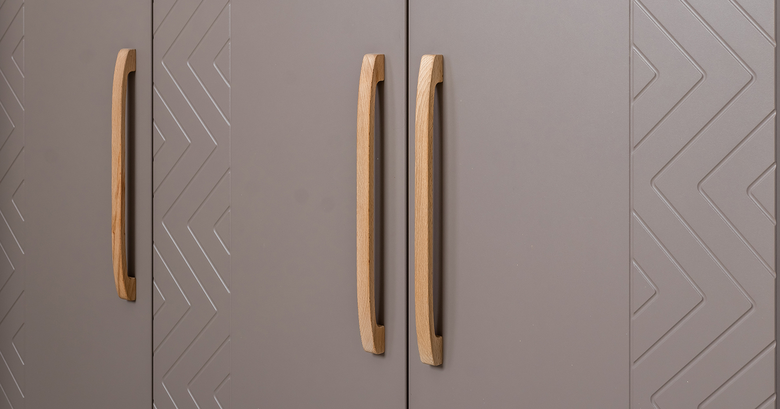 Фасады выполнены из МДФ с матовой поверхностью, изящная фрезеровка даёт визуальную лёгкость. Приглушённые натуральные цвета и чистые линии позволяют расслабиться и не фокусироваться на деталях интерьера. Лицевая фурнитура из натурального ясеня.
